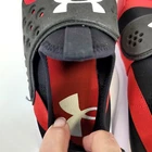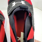 This Under Armour Runplay Running Shoe in Red & Black is perfect for active kids. With a slip-on design, it's easy for them to put on and take off, while the almond toe shape offers a comfortable fit. The sneaker style is great for both athletic activities and casual wear. The shoe comes in a UK size 6 and a US size 6.5, with an EU size of 39. The color scheme of red and black is sure to make your little one stand out from the crowd. This is listed as pre-owned item but like new with wear only down on sole from trying on in store.