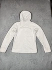 Under Armour Jacket Womens Medium White Fleece Full Zip Hooded Plush Softshell Condition: Gently worn, no visible flaws or stains, overall in excellent pre-owned condition Shell: 100% polyester ultra-soft plush fleece Full zip front closure with Under Armour branded zipper pulls Hooded with adjustable bungee drawstrings for a custom fit Two front zipper hand pockets and one zippered chest pocket for secure storage Subtle Under Armour logo tag on front hem and branded zipper details Made in Indonesia Tag size: Medium (Womens); please refer to provided measurements for best fit Perfect for layering, outdoor activities, or everyday casual wear