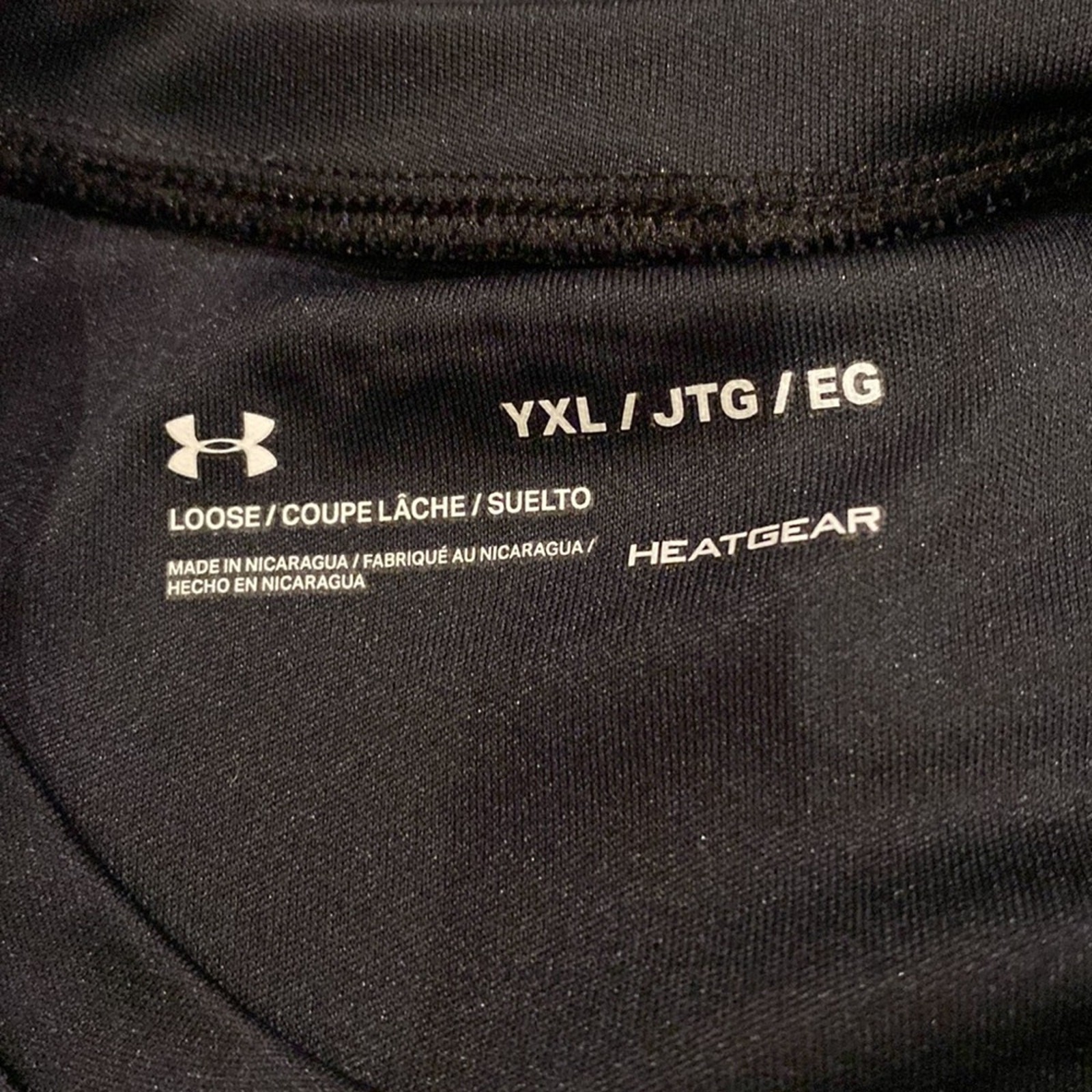 This Under Armour HeatGear T-shirt is perfect for your active kid! It is a youth extra large size and has a loose fit for comfort. The shirt is black and features short sleeves, making it ideal for warm weather. It is made with HeatGear technology to keep your child cool and dry during any activity. Don't miss out on this great addition to your child's wardrobe!