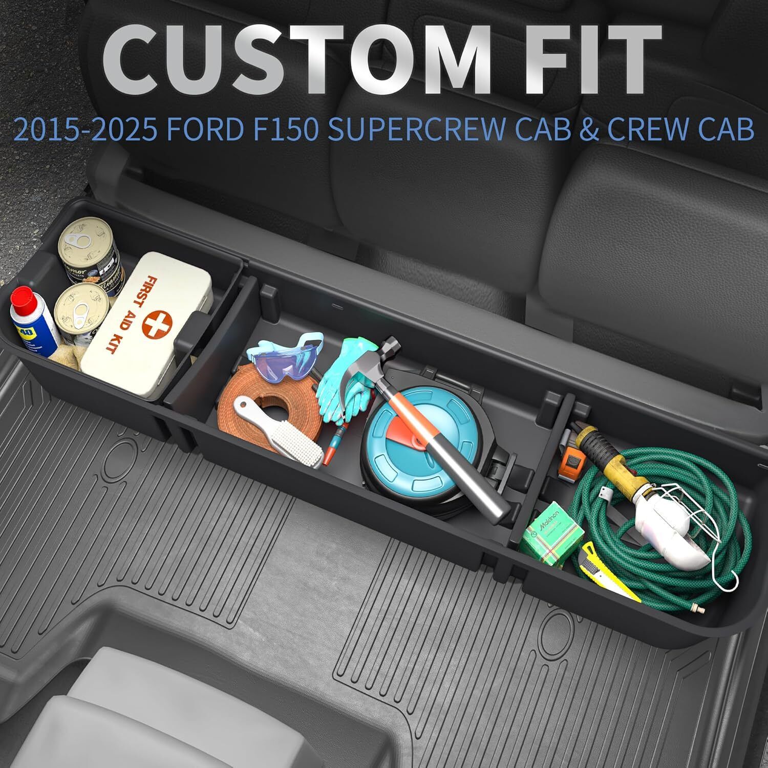 Item Description: About this item PERFECT FIT: ① Compatible with 2015-2025 Ford F150 SuperCrew Cab, 2017-2024 F-250/F-350/F-450/F-550 Super Duty | Crew Cab (4 full size doors) (both with and without the factory subwoofer) ② Includes 2 under seat storage box (1 large & 1 extra free small ) PERFECT STORAGE SPACE: Underseat storage organizer fits the rear seat seamlessly and it can store your valuable things safely or hide all your garbage out of sight underneath your rear back seat. UNIQUE THREE-IN-ONE DESIGN: Underseat gear box fits your truck precisely and provides the large storage capacity with two extra small boxes. Great storage for truck (eg:snow brush, battery jumper, tools, etc.). And the dividers make it easy to store any item in the truck, no noise occurs. TOUGH & DURABLE: Made from a tough & durable material, Get more organized and keep your stuff from sliding around w/ texture black anti-skid surface. The storage box is solid and made of upgraded PP tough & durable material. EASY TO INSTALL: OEDRO trunk organizers can be installed quickly and easily in under 5 minutes with the screws and instruction provided. L 54.64" x W 13.07" x H 8.74". Packaged: 3 x Storage Boxs Note: 1. Professional installation is highly recommended, please contact us freely if you have any questions about installation. 2. The floor mats are not fit for vinyl floor. Shipping The shipping rates listed are only for residential or commercial destinations in the continental 48 United States. All international sales will go through eBay Global Shipping Program.Please ask us if there are any questions. We only ship the item to the address that is sent to us at the time of checkout. Please verify the correct shipping address in your PayPal account before making your payment. If we ship your item to an old or invalid address and you are not able to locate the item, we are not responsible for shipping a replacement. Currently, we do not ship to Hawaii, Alaska, Puerto Rico,APO/FPO/PO Boxes. We use USPS, UPS & FedEx as shipping method. Payments cleared before 12 PM PST, will be shipped on the same day. Payment We accept PayPal and all forms of credit card. We will only ship to the confirmed Paypal shipping address given with the payment. We do not offer local pick up service. Return 30 days Money Back Guarantee. If any package that needs to be returned, please contact our customer service first to receive a RMA form. All return items MUST be in brand new condition. About Us Specialized in aftermarket auto parts since 2012, we source and work directly with professional manufacturers to provide the highest quality parts at the most economical prices. We also has over 5 years of shipping experience with FedEx and USPS . Our packing quality is guarantee ,item shipping is timely! On Jul 9, 2023 at 20:53:38 PDT, seller added the following information: On Oct 9, 2023 at 19:46:35 PDT, seller added the following information: On Jan 12, 2025 at 22:18:28 PST, seller added the following information: On Jan 14, 2025 at 03:50:31 PST, seller added the following information: On Feb 24, 2025 at 20:09:49 PST, seller added the following information: On Mar 6, 2025 at 06:44:09 PST, seller added the following information: On Mar 23, 2025 at 21:33:51 PDT, seller added the following information: On Mar 23, 2025 at 22:46:46 PDT, seller added the following information: On Aug 12, 2025 at 01:59:17 PDT, seller added the following information: On Oct 14, 2025 at 09:58:40 PDT, seller added the following information: