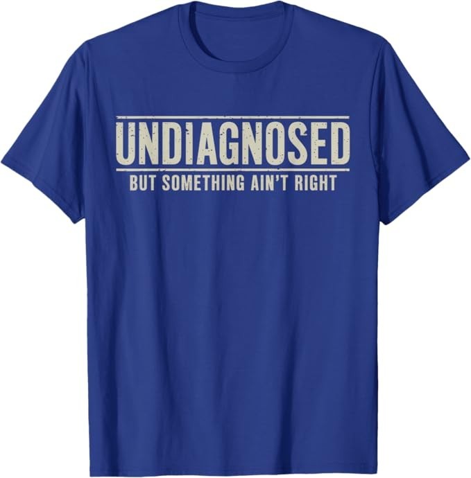 Undiagnosed But Something Ain't Right Funny Saying T-Shirt Designed and Printed in USA Product Features: • Classic Look and Feel: This ultra cotton tee offer the timeless appeal of traditional cotton. The high-quality print enhances its casual appearance. • Material: Made from 6.1-ounce, 100% cotton. (Note: Dark Heather variant is 50% cotton, 50% polyester.) • Durability: Features double-needle stitching on the neck, sleeves, and hem for added durability. Designed for a roomy, unisex fit. • Print Type: DTG (Direct to Garment) • Manufacturer: Gildan 5000, 5000b (Made in USA) Shipping Information: • Handling Time: With POD(Print-On-Demand) product model, we typically require about 3 business-days handling time before shipping. In most cases, our handling time’s , rang e from 1-2 business days. • Delivery Time: • USA: Approximately 2 -6 business days • Canada: Approximately 6-10 business days (We currently don’t offer international Shipping) • Worldwide: Approximately 15-25 business days (We Currently don’t offer international Shipping) • Shipping Carriers: USPS and DHL • Note: Business days exclude weekends and holidays. Return & Exchange Policy: • Quality Guarantee: We stand behind the quality of our products and workmanship . Any defects or errors on our part must result in a refund/ replacement at no charge. • Conditions for Returns: Returns are generally not accepted for user errors such as incorrect selection of sizes, designs, or colors. Returns /Replacements are acceptable for damages such as poor printing results, incorrect size or design caused by us. • Note: Please reach out to us if there are any questions or issue s with your item, we’ll do our best to resolve any issue you might have. Note: • We’re glad to have your support! If you have a moment, y our honest feedback is very valuable to us. Thank you!