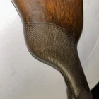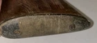 Unidentified Antique Checkered Wood Gun Stock Horn Butt Plate with Signed Screws. Just over 16" long, horn butt plate, the two screw have a design on the heads, I thought it looks a little like the Ruger bird, someone said it may be Czech, I'm not sure. It shows some dings and finish loss, checkering at the grip area. Please see photos and check my other sales. I combine shipping.