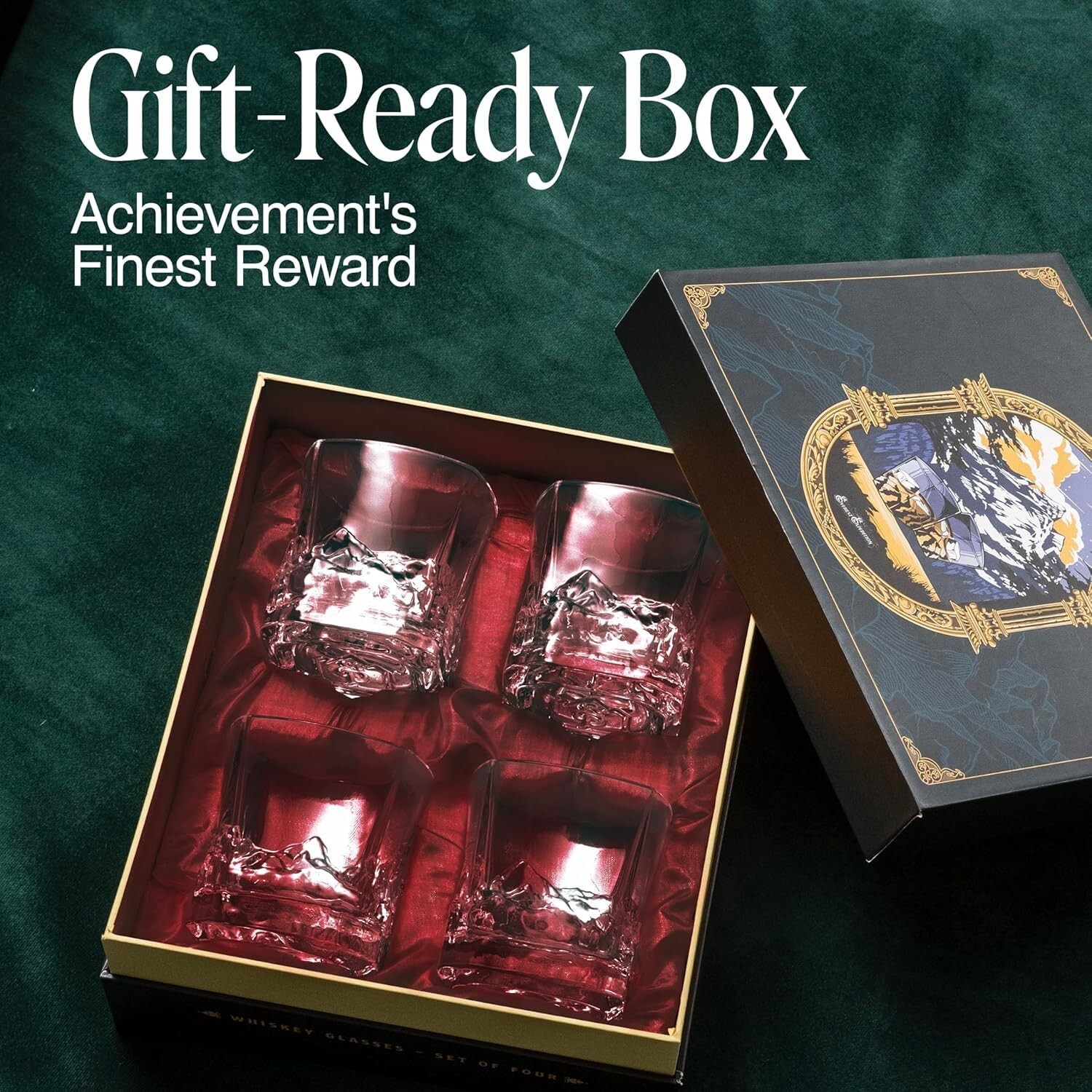 Unique Everest Bourbon Glasses Set of 4 in Gift Box - Mountains Theme - Heavy Freezable 8 OZ Old Fashioned Whiskey Glasses Set of 4 - Scotch Glass Set 4 - Whiskey Gifts for Men Product Details Color: Red Fabric Lined Gift Box Size: Set of 4 Brand: EdelweissPeak MPN: EP-2-1 EAN: 5065007058190 UPC: Does not apply Brand: EdelweissPeak Color: Red Fabric Lined Gift Box Special Feature: Gift-Ready, Highly-Giftable, Unique Mt. Everest Panorama Sculpred on Glass Surface Style: Classic Theme: Mountains Brand: EdelweissPeak Color: Red Fabric Lined Gift Box Special Feature: Gift-Ready, Highly-Giftable, Unique Mt. Everest Panorama Sculpred on Glass Surface Style: Classic Theme: Mountains Recommended Uses For Product: Home Occasion: Christmas, Housewarming, Anniversary, Father's Day, Birthday Included Components: 4 Whiskey Glasses, Gift-Ready Fabric Lined Gift Box, Our Love Specific Uses For Product: Cold Drinks Shape: Tumblers Pattern: Solid Product Care Instructions: Dishwasher Safe Age Range (Description): Adult Material Feature: Recyclable Cartoon Character: Mt. Everest Reusability: Reusable Unit Count: 4.0 Count Product Dimensions: 3"W x 3"H Material Type Free: BPA Free, Lead Free Number of Items: 4 Customer Package Type: Gift-Ready Box inside of an additional protective packaging Finish Type: Glossy Manufacturer: EdelweissPeak Size: Set of 4 Item Weight: 4.99 pounds Item model number: EP-2-1 Date First Available: May 17, 2023 Unique Christmas Gift for Whiskey Lovers: This elegant whiskey glasses set 4 features a stunning panorama of Mount Everest, making it the ultimate gift for men who aspire to reach new heights, all beautifully packaged and ready for gifting. A Gift That Reflects His Ambitions: Celebrate his journey towards new heights with this remarkable mountain whiskey glasses with the intricate mt. Everest panorama on the surface, beautifully boxed and ready to make a lasting impression. Perfect Addition to His Home Bar: The distinctive design and gift box makes this set a must-have among whiskey gifts for men, adding sophistication to any home bar collection. Ideal Bourbon Gifts for Men: This bourbon glasses set of 4 is not just glassware but a symbol of ambition, arriving in a gift-ready boxmaking it a standout among other gifts.