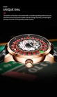 The Unique Design PINDU NH35 Men Mechanical Watch with a Rotating Roulette Poker Theme is a stylish and eye-catching timepiece for Unisex Adults. Featuring a gold case colour and a round shape, this wristwatch has an automatic self-wind movement and a water resistance of 3Bar, making it suitable for everyday wear. The watch also has a durable stainless steel case material and a comfortable leather band, ensuring both style and functionality.With a case size of 16mm, this wristwatch is perfect for those looking for a statement accessory that stands out. Whether you're a fan of poker or just appreciate unique design, this PINDU watch is sure to impress with its intricate detailing and quality craftsmanship.