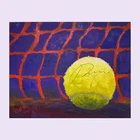 Introducing a one-of-a-kind masterpiece for tennis enthusiasts and art collectors alike! This vibrant oil painting captures the essence of the sport, featuring a dynamic close-up of a tennis ball against a vivid net background. The rich colors and bold brushstrokes bring the scene to life, evoking the energy and intensity of the game. But what truly sets this artwork apart is the autograph gracing the tennis ball—none other than Andrey Rublev, a celebrated figure in the tennis world. This piece isn’t just a painting; it’s a unique fusion of art and sport, commemorating the talent and spirit of a modern tennis legend. Andrey Rublev’s signature adds a personal touch that elevates this painting from an exquisite artwork to a cherished collectible. Known for his powerful gameplay and vibrant personality, Rublev’s autograph brings his passion and dedication right into your home. Whether you’re a fan of his incredible tennis career or simply appreciate the beauty of this colorful piece, the signed ball serves as a focal point that draws the eye and invites admiration. It’s a rare opportunity to own a piece of art that’s both visually striking and personally connected to one of the sport’s brightest stars. The painting’s composition is carefully crafted to highlight the contrast between the textured, glowing tennis ball and the intense backdrop of the net. The use of bold, contrasting colors—deep blues and purples against the fiery orange of the net—creates a dynamic visual impact that mirrors the excitement and unpredictability of a thrilling tennis match. The thick, expressive brushstrokes add depth and movement to the piece, making it feel as though the ball could bounce right off the canvas and into your world. This artwork is not just for tennis lovers but for anyone who appreciates the intersection of athleticism and artistic expression. Don’t miss your chance to own this unique, signed painting that celebrates both the sport of tennis and the artistry of oil painting. It’s perfect for displaying in a sports-themed room, an art gallery, or any space where you want to make a bold statement. As a conversation starter and a testament to the skill of both the athlete and the artist, this piece is truly unmatched. Add it to your collection today and experience the thrill of having a slice of tennis history hanging on your wall!