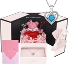 【Valentines Day Gifts for Her】The rose teddy bear gift box set contains a shiny necklace with sapphires. The deep blue and red roses represent the warm and deep feelings of each gift. It is a unique gift for girlfriends, wifes, and mothers. 【The Eternal Rose Symbolizes Everlasting Love】The rose bear flower is made of 3 red real roses through special craftsmanship. The romantic rose bear is surrounded by many petals, it is also handmade. The rose is processed by special craftsmanship. As long as it is stored normally, it can be kept for 3-5 years! 【With Sapphire Necklace】The sapphire necklace is stored at the bottom of the jewelry box. The shining blue diamond will be a nice surprise. The chain is made of brass and has an adjustment buckle. It can be adjusted according to the favorite length and is suitable for most people to wear. 【Exquisite Packaging】The rose bear gift box is finely crafted and not easy to damage. There is no need to worry about this presents for mom being damaged during transportation. The hard box packaging can be perfectly delivered to every customer. 【Great Gift Idea】Whether it is Christmas, Mother's Day, Anniversary, Birthday, it will be a great gift for your female friends, sisters, mothers, family and lovers, and they will be very happy to receive the Rose Bear Gift with Sapphire Necklace. 【Tips】If the bow falls off when you receive the product, please don’t worry. It is a magnetic bow. Just put it back in the middle of the box to decorate it. We also provide greeting cards for writing, saving your time of buying greeting cards separately. I believe that this gift with handwritten blessings will be a unique surprise.