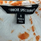 Unique Spectrum Womens Top Small Orange White Tie Dye 3/4 Sleeve Pullover Shirt Top is in good pre-owned condition. There are no issues noted. Please see photos for condition and measurements to ensure fit. Size: Small Items are shipped out via USPS First Class, Priority Mail or UPS Ground with a tracking number for confirmation. Items ship same day/Next Day shipping so expect a quick delivery. Buy More & Save! Combined shipping for US customers - $1.99 for each additional item (Add items to shopping cart and discounts will automatically calculate during checkout) All of our measurements are approximate and provided in photos. Please compare the measurements we provide to an article of clothing you have that already fits.