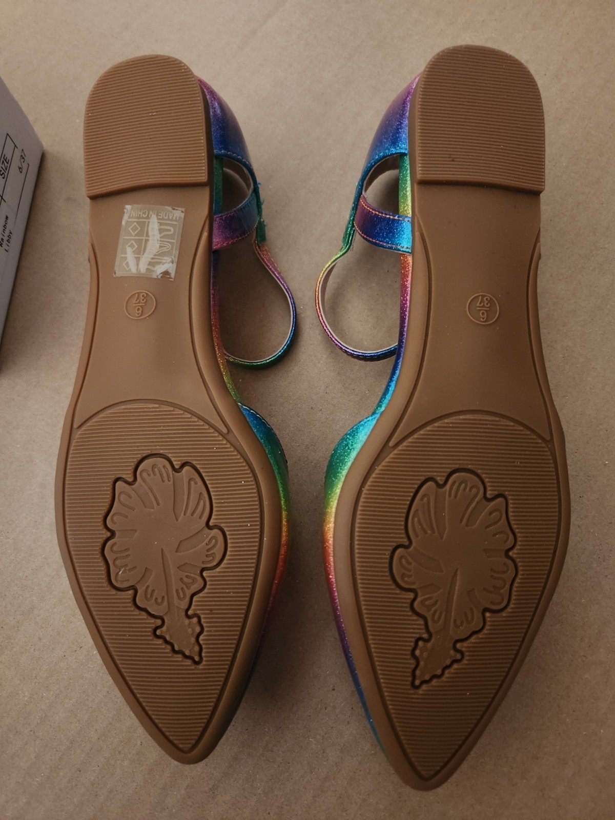 Unique Vintage strappy plastic/vinyl women's flats with rainbow design . Condition is New with box. Shipped with USPS Ground Advantage.
