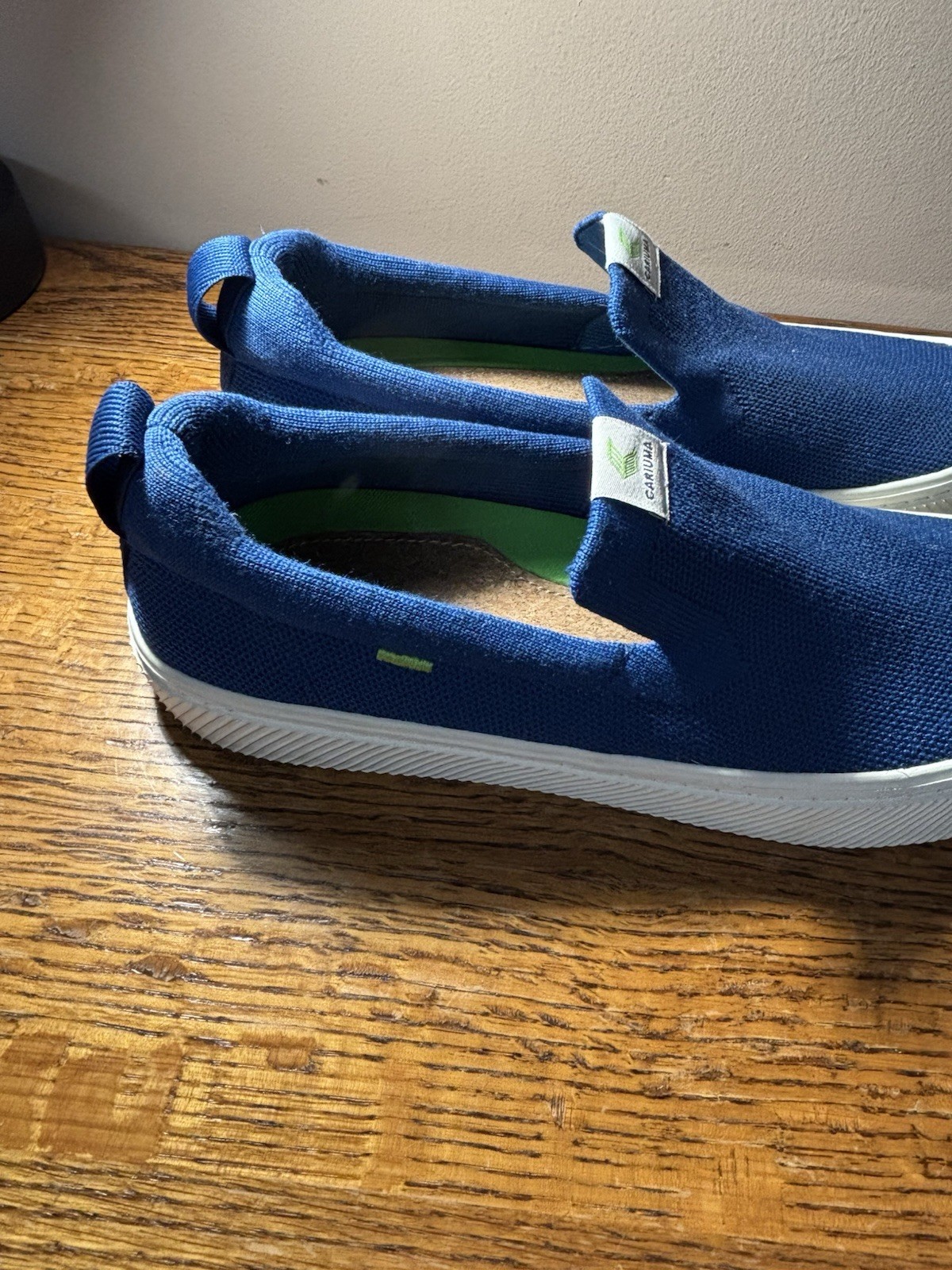 These unisex Cariuma blue slip on boat shoes in size W11.5/M10 are a stylish and comfortable choice for casual wear. With a solid blue color, round toe shape, and slip on closure, they offer a classic boat shoe style. The synthetic upper and outsole materials, along with the slip-resistant features, ensure durability and safety. The breathable synthetic insole provides added comfort, making these shoes a versatile option for everyday wear.