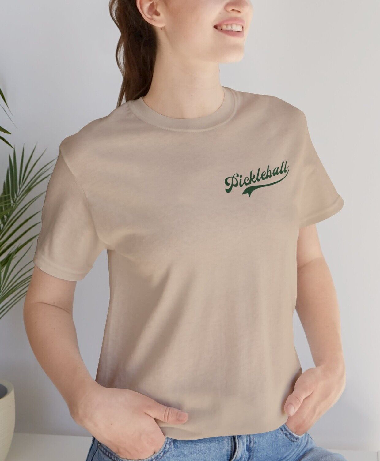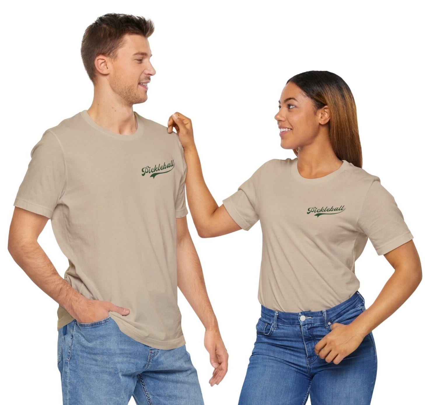 Embrace your love for pickleball with this PREMIUM eye-catching T-shirt. Its regular fit ensures comfort for all-day wear, while the standard size type caters to a classic look for men and women. This premium T-shirt features a playful graphic that captures the essence of pickleball, making it an ideal choice for both casual outings and active gameplay. Whether you're on the court or off, this shirt promises to add a touch of personality to your wardrobe. SIZE UP!!! FREE SHIPPING