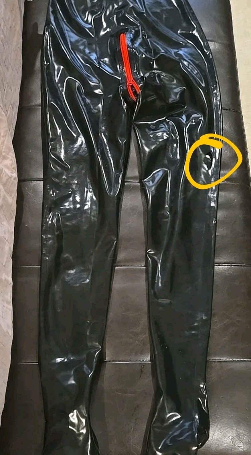 Note: there is a small hole in the pants Color: As shown in the figure Features:100% natural latex production, all purely manual cutting, without any filler, no effect on the human body. Kindly note that: You receive the product has been sprayed bright agent, the product with a layer of oil, please dry before use, wear a thin layer of talcum powder in the product before the test. Latex is a high elasticity product, pay attention to sharp objects when wearing. Pictures are only samples for reference. Due to limitations in photography and the inevitable differences in monitor settings, the colors shown in the photograph may not correspond 100% to those in the items themselves. Items arrived with a pre-treated shine to ensure that the latex does not dry and crack. The size small is measured as 22-24inches NOT STRETCHED.