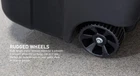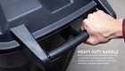 This 32 Gallon Trash Can with wheels and attached lid is perfect for heavy loads and a wide variety of contents. Use it as a trash or recycling bin. It is ideal for use indoors, outdoors, in the garage, basement, and everywhere in between. United Solutions' 32-gallon trash cans are strong, durable, sturdy and reliable. With a securely attached lid, you can feel confident that its contents are safe and secure. Tote the large trash can with lid around on its rugged wheels. With the capacity of 64 pounds, you can load it up and easily transport this big trash can with the ergonomic handle. Constructed with heavy duty polypropylene and high-quality construction, this garbage can with lid is ideal to endure extreme temperatures and rough use. Capitalize on its versatility, and use this trash can in your basement, kitchen, garage, back yard, and more. Product Dimensions – 22.5” L x 21” W x 33.7” H. Securely Attached Lid – With the attached snap lock lid, this trash can will make it simple to place trash inside and keep it there. Leave this trash can with lid in your driveway backyard and know that everything is secure, even in windy conditions. Heavy Duty Handle – Make transportation effortless with the comfortable and easy to grip handle on this black trash can with wheels. Paired with the integrated wheels, getting this 32 gallon trash can to the curb and back has never been easier. Rugged Wheels – Built tough, these wheels make for smooth transport while the garbage can is in use, making this perfect for outside use on your patio, deck or in your garage. Tote this trash bin wherever you need it to go without having to lift it. Withstand the Elements – This outdoor trash can is with heavy-duty polypropylene and durable construction to endure extreme temperatures and rough use. The large bin on wheels is impact resistant and can be trusted on rough terrain and smooth ground. Multiple Uses - The sleek design and size of this black trash can make it a versatile addition to any space. Perfect for use in the garage, on the patio, or at the office. Use it as a dog food bin, recycle bin, deck storage container, and more.