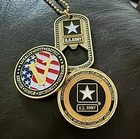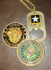 Show your patriotism with this amazing United States 🇺🇸 Army Challenge Coins and Dogtag Bottle Opener Set. These original items are perfect for collectors and military enthusiasts. The challenge coins represent the pride and honor of the US Army, while the dogtag bottle opener is a useful and stylish accessory. Made in the United States, this set is a true representation of militaria and a must-have for any collection.
