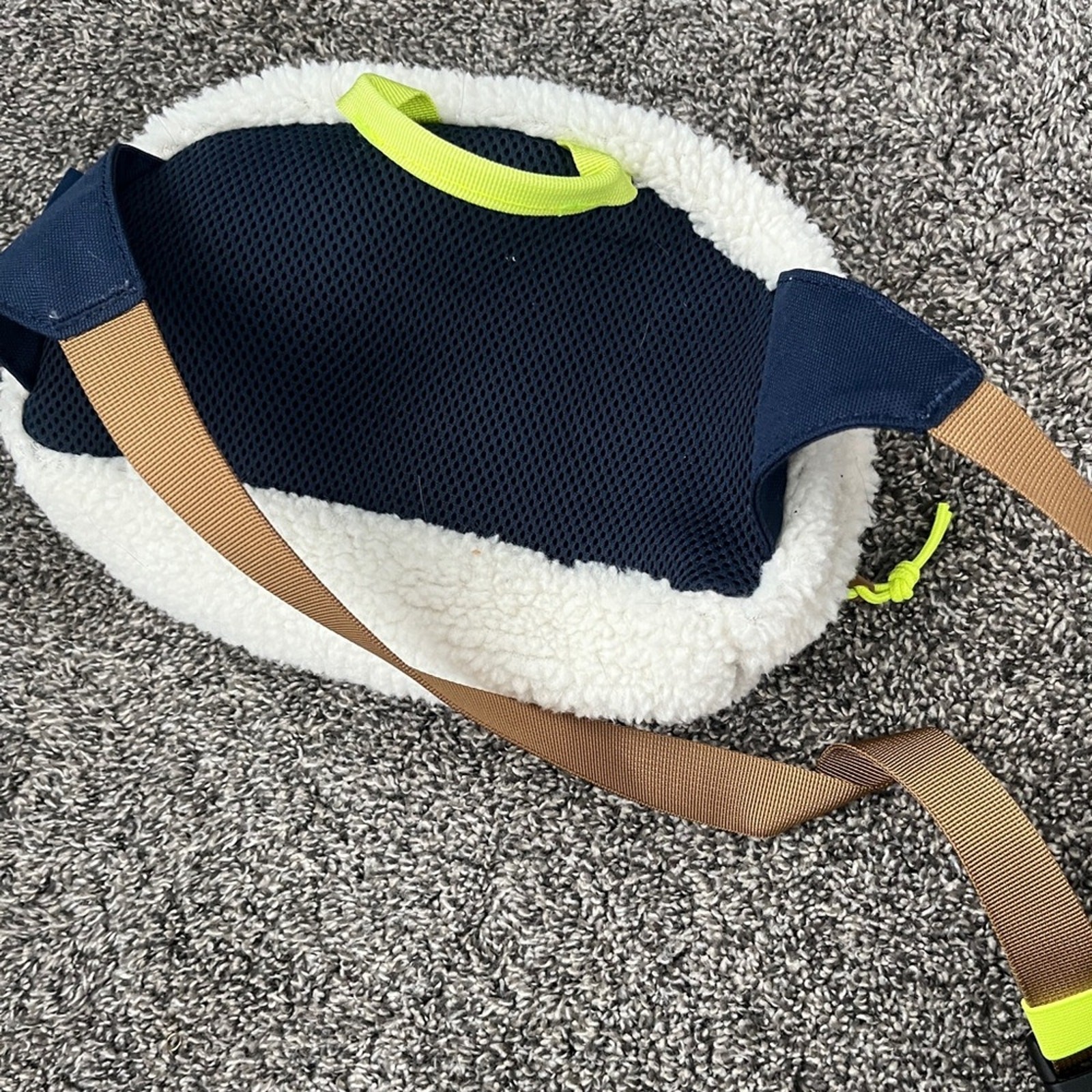 United by blue recycled Sherpa utility fanny pack belt bag Get ready for some warm fuzzies. Our signature Utility Fanny Pack got a snuggly makeover with recycled sherpa and organic cotton corduroy accents. Perfect for everything from snowy hikes to daily errands. 100% recycled polyester with 100% organic cotton corduroy Sherpa fanny pack with corduroy accents Adjustable waist strap 5.5” H x 10.25” L x 4.5” D Spot clean Made responsibly in Vietnam