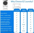 Elevate with ergonomic comfort: Our EZ Laundry pedestal for washer and dryer ensures effortless access with a 16-inch height, reducing back pain by bringing your appliances to a comfortable level; every laundry day becomes a breeze, letting you focus on what truly matters. Unmatched durability at its core: Crafted from hard-wearing alloy steel, our washer dryer pedestal stands robustly under the load, holding up to 800 lbs securely; it eliminates any worries about stability, promising you lasting support for all your laundry appliances. Versatile fit for major brands: Universal design accommodates most washer and dryer pairs easily, offering seamless integration with your existing laundry setup; free yourself from brand restrictions and enjoy a solution tailor-fit to your needs without compromise. Simplified setup & maintenance: Featuring an intuitive design, our laundry pedestal offers hassle-free installation and includes a drain pan and hose, ensuring uncomplicated maintenance; enjoy peace of mind knowing cleaning and setup are easier and stress-free. Added security with leak protection: This washer dryer pedestal excels in leak prevention, housing a built-in drip pan to catch drips and spills, preserving your laundry space; focus on efficiency and safety, knowing your floors are safeguarded from potential water damage. Will Your Machine Fit? Before placing your order, please measure the base dimensions of your laundry machine. Typically, the base depth of your machine matches its width. For example, if your machine is 27" wide, its base depth is also 27". Although the listed depth often includes the door protrusion and may exceed 30", the actual base depth remains 27", making it compatible with our pedestals. This rule also applies to 24", 28", and 29" wide machines, which have corresponding base depths of 24", 28", and 29". Additionally, ensure there is ample clearance above your machines if you have shelves or cabinets, as the pedestals will elevate your machines by 16" or 18". Our pedestal is universal in design and can fit all brands such as LG, Samsung, Maytag, GE, Speed Queen, Whirlpool, Electrolux, Miele, Bosch and many more! This listing is for only one pedestal. Follow us on Facebook and Instagram, we would love answer any and all your questions and please tag us with your purchases. What to receive a FREE EZ Laundry Hamper? Scan the QR Code inside each package to find out. Returns must be within 30 days of delivery. Items must be unused and in original packing.