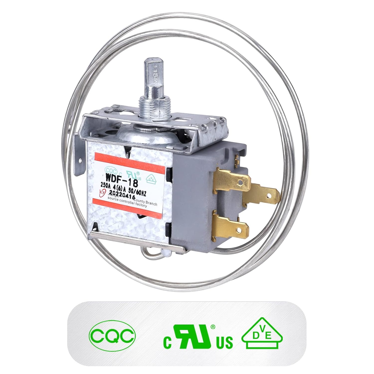 The Mini Fridge Thermostat help you solve the problem of excessive freezing and non-working of the refrigerator. High quality accessories by HouseUp, CQC, CRUUS, VDE, three kinds of certification, the same price, please choose better products. 3 Pin screw mount Universal WDF-18 refrigerator thermostat 250V Compatible with 110V 4(6)A 50/60Hz 3 Pin refrigerator thermostat is compatible with most refrigerators, just need their pins are 3pin and the same installation method (rocker thread installation) MINI FRIDGE THERMOSTAT WIDELY APPLICATION: Control the temperature of fridge, freezer, display cabinet, congealer, beverage cooler and similar Electrical appliances, WDF-20 thermostat can control the temperature within the range you want, automatically NO/OFF Product Description