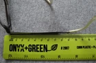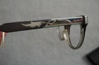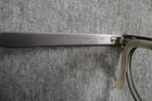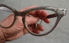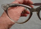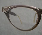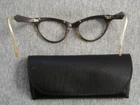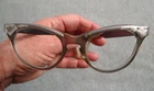 Universal 4 1/4 Aluminum Cat EYE Glasses S Women's Girl's Frame Only Silver/Gray Aluminum Temples and Cat Eye pieces on gray plastic frames. These are smaller, not for adults. Maybe a small woman or young girl. Frame measures 128mm across the top (tip to tip) Temple measures 110mm to the bend, 40mm behind the ear Bridge measures 11mm inside across the nose. No lenses. Pre-owned, good condition. Wear and scratches on the ends of the temples. They have an older black faux leather case to protect them in storage/shipping.