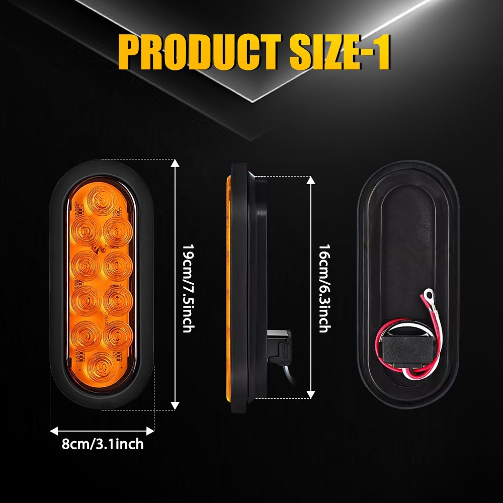 Specification Light color:Amber Shell diameter:6 inches Material:ABS+PC+Rubber+Metal LED quantity:12LED Voltage:12v Waterproof grade:IP67 Service life:50000h+ Features: *Upgraded LED: Each lamp consists of 3030 SMD LED chips with wider lighting angle and better heat dissipation. It is 3 times brighter than other products. *Waterproof: The tail light is highly silicon sealed with an IP67 waterproof rating, which works even under extreme conditions such as rain and snow. *Easy to install: Easy installation with direct replacement, other modifications are not required. *Unique design 2X Waterproof Amber LED DRL Running Light Taillight 6" for Universal Trailer RV Specification Light color:Amber Shell diameter:6 inches Material:ABS+PC+Rubber+Metal LED quantity:12LED Voltage:12v Waterproof grade:IP67 Service life:50000h+ Features: *Upgraded LED: Each lamp consists of 3030 SMD LED chips with wider lighting angle and better heat dissipation. It is 3 times brighter than other products. *Waterproof: The tail light is highly silicon sealed with an IP67 waterproof rating, which works even under extreme conditions such as rain and snow. *Easy to install: Easy installation with direct replacement, other modifications are not required. *Unique design The groove inside the ring has been upgarded, adding three bumps to make the connection between the ring and the taillight tightly.These help the tailights not to fall out and can be firmly fixed the seal ring installed on the mounting bracket.You don't need to worry about the loose lights or wires anymore! *Connection White wire connects to negative. Red wire connects to amber light with high brightness Black wire connects to amber light with low brightness *Functions It can be used as running lights, brake lights, taillights and so on. *Wide application: Universal Fits All vehicles with 12V Power Supply such as car, truck, trailer, Semi Trailer, Semi Trucks, boat, flatbed, bus, lorry, van, caravan, camper, RV Jeep etc. Note: Please check the detail information carefully before purchasing. Your satisfaction is our utmost concern, please feel free to contact us for any questions and concerns. Package Include: 6Inch Tail Lights w/ Mounting *2 Item Specifics Brand AUXITO Lens Color Amber Light Color Amber Manufacturer Part Number Does Not Apply Material ABS PC Placement on Vehicle Rear Diameter 6 inches Voltage 12 V Warranty 1 Year Waterproof IP67 Package Include tail light*2 Lighting Technology LED Housing Color Black Type Tail Light Assembly Items Included Bulbs Features Sealed Assembly Vintage Car Part No Mounting Style Screws Performance Part Yes Universal Fitment Yes Manufacturer Warranty 1 Year Finish Smooth Functions running lights, brake lights, taillights and so on Model Fits All vehicles with 12V Power Supply Payment We can accept payment by credit, debit, and gift cards; Apple Pay, Google Pay, PayPal, and PayPal Credit. Shipping 1. All items will be shipped in 24 hours after receiving your payment . 2. We ship this item to US only via USPS first class mail. It usually takes 3-5 working days to deliver. Returns 1. We offer 60 days return policy. 2. Please contact us within 60 days from the date you receive your package if you have any questions with the products . 3. Refund will be sent after we got your returned package. 4. All returned items should be in the original packaging with tracking number. Contact Us We work from Monday - Saturday 9:00AM - 6:00PM PST, but we will reply you once we get your message .There will be some delay on response if you send message or E-Mail on Sunday. DESCRIPTION PAYMENT SHIPPING RETURN POLICY CONTACT US Hot item Help & Info Payment Policy Shipping Policy Return Policy FAQ About Us 2X Waterproof Amber LED DRL Running Light Taillight 6" for Universal Trailer RV Specification Light color:Amber Shell diameter:6 inches Material:ABS+PC+Rubber+Metal LED quantity:12LED Voltage:12v Waterproof grade:IP67 Service life:50000h+ Features: *Upgraded LED: Each lamp consists of 3030 SMD LED chips with wider lighting angle and better heat dissipation. It is 3 times brighter than other products. *Waterproof: The tail light is highly silicon sealed with an IP67 waterproof rating, which works even under extreme conditions such as rain and snow. *Easy to install: Easy installation with direct replacement, other modifications are not required. *Unique design The groove inside the ring has been upgarded, adding three bumps to make the connection between the ring and the taillight tightly.These help the tailights not to fall out and can be firmly fixed the seal ring installed on the mounting bracket.You don't need to worry about the loose lights or wires anymore! *Connection White wire connects to negative. Red wire connects to amber light with high brightness Black wire connects to amber light with low brightness *Functions It can be used as running lights, brake lights, taillights and so on. *Wide application: Universal Fits All vehicles with 12V Power Supply such as car, truck, trailer, Semi Trailer, Semi Trucks, boat, flatbed, bus, lorry, van, caravan, camper, RV Jeep etc. Note: Please check the detail information carefully before purchasing. Your satisfaction is our utmost concern, please feel free to contact us for any questions and concerns. Package Include: 6Inch Tail Lights w/ Mounting *2 Payment Shipping Returns Contact Us We can accept payment by credit, debit, and gift cards; Apple Pay, Google Pay, PayPal, and PayPal Credit. 1. All items will be shipped in 24 hours after receiving your payment . 2. We ship this item to US only via USPS first class mail. It usually takes 3-5 working days to deliver. 1. We offer 60 days return policy. 2. Please contact us within 60 days from the date you receive your package if you have any questions with the products . 3. Refund will be sent after we got your returned package. 4. All returned items should be in the original packaging with tracking number. We work from Monday - Saturday 9:00AM 