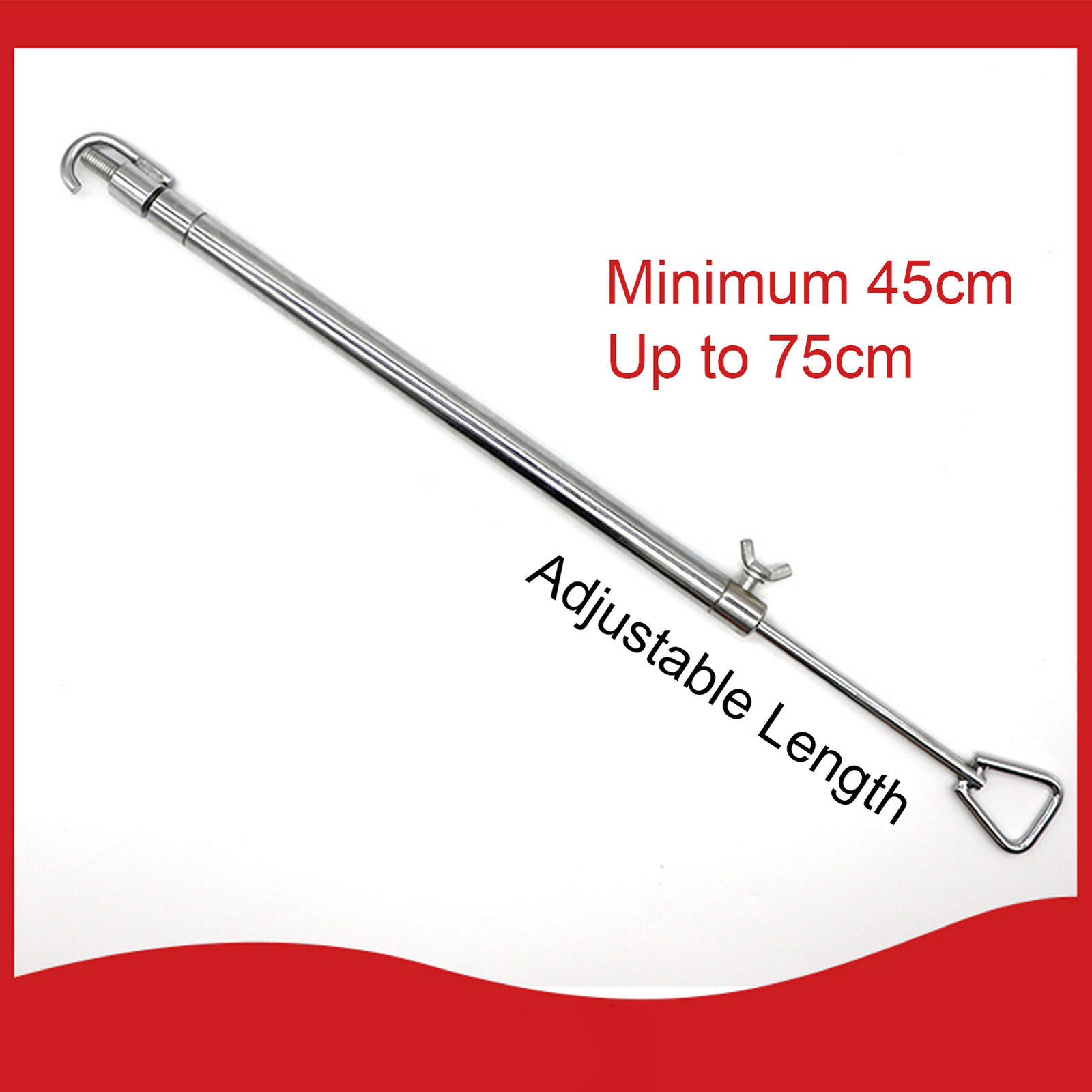 Enhanced Efficiency: With this hood prop rod, you can help you stabilize your engine cover and make your repair or maintenance safer and more convenient. No more worrying about the hood falling down or getting in your way. This hood prop rod is easy to use and store, and can fit most vehicles. Convenient Solution: No need for extra support or fixation: this hood prop rod saves time when performing hammering, pulling, sanding, or painting tasks while keeping doors open. Versatile and Flexible: This hood prop rod can accommodate different sizes and shapes of doors and hoods, as it can be adjusted from 45cm to 75cm. It is also telescopic and adjustable, so you can easily find the optimal position for your work. Durable Material: Crafted from heavy-duty metal materials, this hood prop rod is exceptionally durable and can withstand rigorous use and extreme conditions. You can rely on it to hold up under heavy loads without bending or breaking, ensuring reliable and long-lasting performance. Hassle-Free Assembly: Say goodbye to the hassle of using tools or screws. Clamp the ends securely between your car hood or door for effortless setup of this hood prop rod. Install or remove it easily, in seconds and without any fuss. Ensure your safety during repairs with our Telescopic and adjustable car hood prop rod. Keep doors open conveniently! Its durable design resists deformation and damages and is easy to install. Specification: Material: Stainless steel Adjustable length: Minimum(approx.)45cm/17.72 inches Maximum(approx.)75cm/29.53 inches Applicable: All makes of cars and trucks. Weight: 710g Pack list: Hood Prop Rod*1