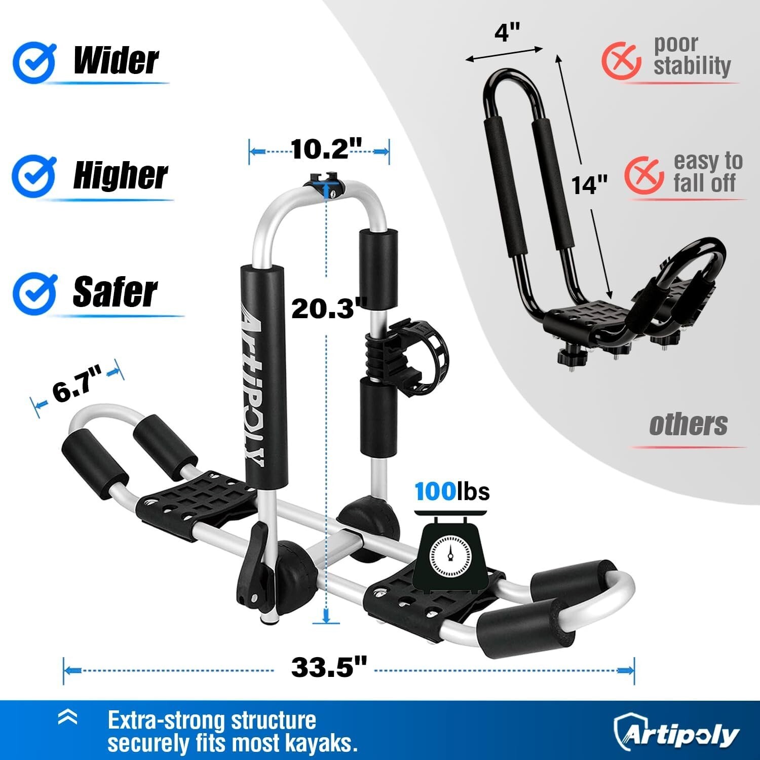 This roof rack is a game-changer for kayak owners! The sturdy aluminum construction keeps my boats secure, and the universal fit works perfectly on my SUV. Easy to install, lightweight yet durable, and holds two kayaks without a wobble. The sleek design looks great, and the upgraded stability gives me total confidence on long trips. No rust or wear issues—just solid performance every time. Worth every penny for hassle-free transport!