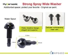 How to use the sprayer 1.Carefully remove existing washer jets(it may be helpful to warm the pipe) 2.Lightly tighten nuts and refit pipes 3.Check spray direction and turn to optimum position 4.If tool low remove jest and re-assemble using tapered washers to raise the angle as shown in diagram 5.When spray pattern correct secure nuts taking care not to over tighten 6. This washer sprayer fits the vehicle which the sprayer is on the hood, but doesn't fit the vehicle that the sprayer hide in the hood. Aluminum material with black finish. The item with small pads, please use them to adjust the angle to get wide sprayed. Produces a wide mist spray for greater windscreen coverage . This windscreen washer nozzle for car that the nozzles are exposed on the hook. The items are small but they can expand the cleaning area of front windshield. The washer sprayer fits the vehicle which the sprayer is on the hood, but don't fit the vehicle that the sprayer hide in the hood.