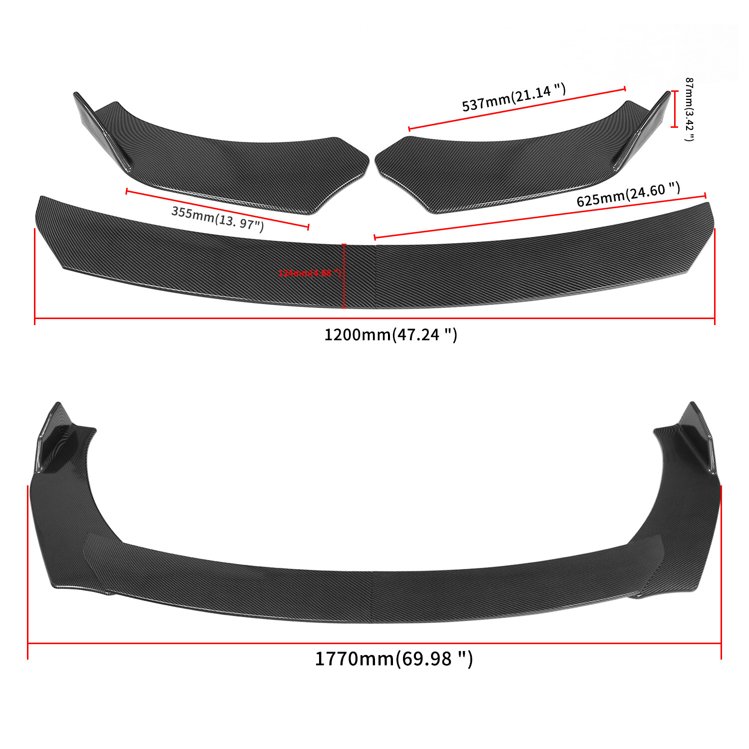 Front Bumper Lip Specification: -Type:Front Lip Chin Bumper Body Kits -Material:ABS -Color:Carbon Fiber -Weight:1768g -Placement on Vehicle:Front;;Lower -Fitment Type:Performance/Custom Feature: -Direct Fit. -Easy install and durable use. -Great quality and great Fitment. -Correct Connector No cutting or splicing. -Strict quality control standards to Build and test. -It'll give you a sporty look without making it too aggressive. -Light in weight and enduring, different optical line comes from different points of view. *Instruction Not Included, Professional Installation Is Highly Recommended.* Strut Rods ★ Length: The length can be adjustable from 5.9" to 11" (200-330mm) ★ Material: Stainless Steel ★ Quatity: 2 x Stainless Steel Bumper Lip Splitter Tie Rod Bars. ( Stainless steel has weldability, corrosion resistance and heat resistance.) ★ Position: This exquisite and compact lever is mainly fixed on the body components (front and rear surround, skirt, head and tail lip), and can also be installed in the car center console or interior trim panel ★ Require: Product will require drilling holes into the bumper and/or lip/diffuser to attach safely to the vehicle. Package Included: 1set Front Lip Chin Bumper Body Kits 2 X Strut Splitter Rods On Jan 16, 2025 at 13:25:46 PST, seller added the following information:
