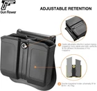 About this item GUN&FLOWER UNIVERSAL DOUBLE MAGAZINE HOLSTER 9MM/.40 WITH GREAT RETENSION FOR DIFFERENT WIDTH MAGAZINES 【 Double Mag pouch】Magazine holder fits most common models with 9mm/.40 double stack magazines. Please check the second image to make sure this item fits your model when you order.(Model Show) 【 Adjust Freely】Turning the screws on the paddle, the cant of the Mag Carrier can be adjusted freely. Inside retension, the adjustable system keeps the magazine more stable, safe, and perfect fit, available for many mags. 【 Durable Material】Our magazine holster use high-quality polymer materials with superior withstand strong impact forces & Extreme temperature tolerance. lightweight, water resistant, sweat resistant, and wear resistant. At the same time, it is also very easy to clean and comfortable to wear. 【 Package】Magazine Pouch*1; Paddle*1; Allen Key*1 【Lifetime Warranty with 24/7 Customer Service】All of our products come with a LIFETIME WARRANTY. If you are not 100% satisfied, we provide a full refund and replacement to you . Build-in Adj Screw For the convenience of customers, we have updated the design. Just need to turn one screw on the paddle, and the cant of the magazine pouch can be adjusted freely. Designed for military, courser, shooting coach, law enforcement agencies or personal protection, etc Military Grade Polymer Materials OWB Magzine Holster with 360° Adjustable Cant/Retention. Extreme temperature tolerance -- Working in -30℃ to 180℃ and Storage in -40℃ to 200℃ Easy to clean and comfortable to wear Withstand strong impact forces Designed for military, courser, shooting coach, law enforcement agencies or personal protection, etc Common Models Glock: G17, G17L, G19, G19X, G26, G34, G43, G43X, G45, G48, G22, G23, G24, G27, G35. Smith & Wesson: M&P 9 Shield M2.0, M&P 9 M2.0, M&P 40 Shield M2.0 M&P 40 M2.0, M&P 45 Shield M2.0, M&P 45 M2.0 Springfield Armory: XD Series, XD-M Series 9mm / .40, XD-S Series, XD-E Series, Hellcat Series Ruger: EC9s, LC9s, SECURITY-9, Ruger American Pistol Sig Sauer: P938, P29, P320, P210, P365, P226, P220, P225, SP2022 Colt: Defender Series, Commander Series,S70 Government, Competition Series 9mm, Gold Cup Series 9mm, Rail Gun Series, Combat Elite Series 9mm, Combat Unit Series, Wiley Clapp Series Beretta: APX Models, M9 Models, Px4 Storm Models, 92 Models Taurus: TH9 Models, TH40 Models, G2s Models, G2c Models, 92 Models Walther: PPQ 45, PPQ M2, PPQ Classic, P99, PPS, PPS M2 CZ: P-07, P-09, P-10 C, P-10 F, 75 Compact, P-01, 75 SP-01, Shadow 2, 75 B, 97 B Heckler & Koch: USP, VP9, VP40, P30SK, HK45, P30, P30L, P2000, MARK 23 Why choose us? Outstanding after-sales service- We care about YOU! We are manufacturers and we can make better products at the same cost. This is the lowest cost due to direct sale to our customers without the distributor