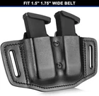 Universal Double Magazine Holder, OWB Magazine Holster Fits 9mm/.40 Double Stack Mags, Mag Pouch Compatible with Glock /Taurus/Beretta/Sig/H&K/CZ/S&W/Colt,Fit 1.5 1.75 2.0 2.25'' About this item 【 Universal Magazine Holder】This Universal Magazine holster fits Most Double Stack 9MM .40 Magazine. Please check the second images where you will be able to find all mags that fit in this universal mag holder. 【Magazine Retention Adjustable For Your Personal Preference & 9mm/.40 Universal Fit】The retention of the mag holder can be adjusted to suit your personal preference for smooth and fast draw. 【Fits 1.5’’ & 1.75’’ Wide Belt】Conceal carry with 1.5'' and 1.75'' wide belt 【LIFETIME WARRANTY】No questions asked return policy and Lifetime Warranty. If for any reason you are unsatisfied, please feel free to contact our 24/7 Customer Services, we stand behind the quality of our work! Product Description FIT 1.5''&1.75'' WIDE BELT