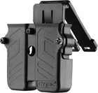 Universal Double Magazine Pouch Fit 9mm 10mm .40 .45 Caliber Dual & Single Stack Magazines, Black Universal Version: Fits 9MM .40 .45 Caliber Magazines Single or Double Stack Mag. Adjust Freely: Turning three screws on the surface, the width of the magazine pouch can be adjusted freely. Belt Mag Holster: Only fit duty belts within 2.3 inches and adjust vertically, freely to adjust the angle within 360°. Maintenance Easy: Unlike leather or other holster materials, it can use cleaning cloth with soap and water to washing. Long-lasting: The polymer holster is composed of durable high-tech polymer material making it durable, light weight, water resistant, sweat resistant, and wear resistant.