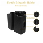 Product description THE UNIVERSAL: Univ ersal Double Magazine Holster Holds Most Dual double stack 9mm .40 .45 cal magazines, Such as Glock 17 19 19X 22 26; Beretta 92 96; H&K VP9; Browning HI-Power 9mm/40; S&W M&P 9mm/.40/.357; Taurus PT800 Series 9mm/.40; Sig Sauer P226 P229; Colt 2000 9mm; Walther PPX PPQ and so on(For more models, please check description ) ADJUSTABLE: Fully screw-adjustable mag pouch with a tension adjustment using Allen key,Two sides clip provides more stable fitness RESIZABLE: The internal dimensions of the mag case's inner length 1.290'' to 1.370'', inner width 0.787'' to 0.905'', Suitable for all mags which in this size range BELT BUCKLE TYPE: Comes with an adjustable and open type belt clip(fits 1.5inch to 2.0inch belts), and a Swivel connection between Belt Clip and mag pouch to allow positioning your magazine pouch with any angle you desire(Use the Allen key) DURABLE: Made of durable polymer material, designed to stand up to punishment,this magazine holster comes with a 30-day money back and 12-month warranty(100% replace new one). anymore questions, please feel free to contact us via contact seller to get help in 12hours Double Magazine Pouch---Fits Most 9mm/.40cal NOTE: Please check the following compatible model carefully before buying. Thanks! Glock: Glock 17/19/22/23/25/26/27/28/29/31/32/33/34/35/37/38/39 (Gen1 2 3 4 5) Sig Sauer: Sig Sauer P250 FS/Sig Sauer P226/Sig Sauer P229/SIG PRO 9 mm/Sig Sauer MK25/Sig Sauer P250 Compact 9mm/.40/Sig Sauer P320 .45 ACP S&W: S&W Sigma/S&W SERIES 40, 59, 69/S&W SW99 9mm .40/S&W M&P 9mm .40 .45 .357 Beretta: Beretta 92/Beretta A1/Beretta FS/Beretta 96/Beretta PX4 Storm/Beretta PX4 F/Beretta M9A3/Beretta Compact Type F/Beretta PX4 9mm/.40 Taurus: Taurus 24/7/Taurus .45 ACP 24/7 OSS/Taurus 92/Taurus 100/Taurus TH9/Taurus 9c/ Taurus TS9/Taurus PT909 9mm/Taurus PT800 Series 9mm .40 Ruger: Ruger SR9/Ruger P89-P95 Series 9mm/.40 Walther: Walther PPX/Walther P88/Walther P99/Walther PPQ M1 (Classic), M2 Springfield: Springfield XD/XDM-9 4.5/XD-9 Mod 2 Tactical/XDM 9mm/.40 H&K: H&K P30/VP9//P30 V3/P30SK-V3/H&K SFP9-SF/SFP9-SF PB/SFP9-SF OR/SFP9-SF SD/SFP9/SFP9 SK/SFP/SFP-FX/SFP9-Handling/H&K USP Full Size/Compact 9mm/.40 Browning: Browning BDM 9mm/Browning HI-Power 9mm/.40 Steyr: Steyr M Series CZ: CZ P-09/CZ 75 Tactical Sports/CZ 75 Tactical SP-01/CZ Shadow 2/CZ P-10C/CZ P07/CZ SP-01 Shadow Colt: Colt 2000 9mm/1911 .45 double stack variants EAA: EAA Witness 9mm/.40 Kel-Tec: Kel-Tec P11, P40 Magnum: Magnum Baby Eagle 9mm/.40 CANIK: All 9mm/.40/.45