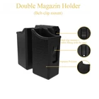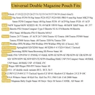 Product description THE UNIVERSAL: Univ ersal Double Magazine Holster Holds Most Dual double stack 9mm .40/.45 cal magazines, Such as Glock 17 19 19X 22 26; Beretta 92 96; H&K VP9; Browning HI-Power 9mm/40; S&W M&P 9mm/.40/.357; Taurus PT800 Series 9mm/.40; Sig Sauer P226 P229; Colt 2000 9mm; Walther PPX PPQ and so on(For more models, please check description ) ADJUSTABLE: Fully screw-adjustable mag pouch with a tension adjustment using Allen key,Two sides clip provides more stable fitness RESIZABLE: The internal dimensions of the mag case's inner length 1.290'' to 1.370'', inner width 0.787'' to 0.905'', Suitable for all mags which in this size range BELT BUCKLE TYPE: Comes with an adjustable and open type belt clip(fits 1.5inch to 2.0inch belts), and a Swivel connection between Belt Clip and mag pouch to allow positioning your magazine pouch with any angle you desire(Use the Allen key) DURABLE: Made of durable polymer material, designed to stand up to punishment,this magazine holster comes with a 30-day money back and 12-month warranty(100% replace new one). anymore questions, please feel free to contact us via contact seller to get help in 12hours Double Magazine Pouch---Fits Most 9mm/.40cal NOTE: Please check the following compatible model carefully before buying. Thanks! Glock: Glock 17/19/22/23/25/26/27/28/29/31/32/33/34/35/37/38/39 (Gen1 2 3 4 5) Sig Sauer: Sig Sauer P250 FS/Sig Sauer P226/Sig Sauer P229/SIG PRO 9 mm/Sig Sauer MK25/Sig Sauer P250 Compact 9mm/.40 S&W: S&W Sigma/S&W SERIES 40, 59, 69/S&W SW99 9mm .40/S&W M&P 9mm .40 .357 Beretta: Beretta 92/Beretta A1/Beretta FS/Beretta 96/Beretta PX4 Storm/Beretta PX4 F/Beretta M9A3/Beretta Compact Type F/Beretta PX4 9mm/.40 Taurus: Taurus 24/7/Taurus 92/Taurus 100/Taurus TH9/Taurus 9c/ Taurus TS9/Taurus PT909 9mm/Taurus PT800 Series 9mm .40 Ruger: Ruger SR9/Ruger P89-P95 Series 9mm/.40 Walther: Walther PPX/Walther P88/Walther P99/Walther PPQ M1 (Classic), M2 Springfield: Springfield XD/XDM-9 4.5/XD-9 Mod 2 Tactical/XDM 9mm/.40 H&K: H&K P30/VP9//P30 V3/P30SK-V3/H&K SFP9-SF/SFP9-SF PB/SFP9-SF OR/SFP9-SF SD/SFP9/SFP9 SK/SFP/SFP-FX/SFP9-Handling/H&K USP Full Size/Compact 9mm/.40 Browning: Browning BDM 9mm/Browning HI-Power 9mm/.40 Steyr: Steyr M Series CZ: CZ P-09/CZ 75 Tactical Sports/CZ 75 Tactical SP-01/CZ Shadow 2/CZ P-10C/CZ P07/CZ SP-01 Shadow Colt: Colt 2000 9mm EAA: EAA Witness 9mm/.40 Kel-Tec: Kel-Tec P11, P40 Magnum: Magnum Baby Eagle 9mm/.40 CANIK: All 9mm/.40