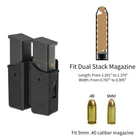 Universal Double Magazine pouch: Double mag holster fits most 9mm .40 caliber dual stack magazines. For Glock 17/19/19X/22/23/26/27/31/32/33/34/35/37/38/39/45(Gen1-Gen5); Sig P226 P229 P250 P320; Beretta 92 96/PX4 Storm PX4 F/M9A3; S&W M&P 9mm/.40/.357 SD9VE; H&K P30/VP9; Browning BDM/HI-Power 9mm/40; Springfield XD/XDM 9mm/.40; Taurus 24/7/Taurus 92/PT800 Series 9mm/.40; Ruger SR9; CZ P-09/CZ 75 Tactical Sports; Walther PPX PPQ; Colt 2000 9mm and more(please check description). Adjustable Retention:The magazine holder case's inner size of the magazine pouch is adjustable as your needs. Tighten or loosen the built-in screw with Allen Wrench to change the tension of rubber. By two side clips and adjust the pressure of rubber suitable for all magazine which size in this range (width from 1.291'' to 1.370'' and thick from 0.787'' to 0.905''). Adjustable Carry Angle:Easily rotate your belt angle by Allen Wrench (±30°adjustable). It means you can set the glock magazine holder from 0°to 60°to fit a comfortable position, compatible duty belt width up to 2 inch. Suitable occasion:The belt buckle fits 1.5" to 2.0" width and less than 0.26'' thick duty belt. You can easily wear the double mag pouch on your belt and remove it any time. Durable Material:The 9mm magazine holder made from superior polymer, Comfort, stability, and have good heat, scratch resistance.