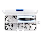 Universal Eyeglasses Sunglasses Watch Repair Kit Stainless Screws Screwdriver The material of the assorted tiny screws nuts are stainless steel; they can work for a long time and you do not worry about the durability. Comes with different lengths and sizes screws that will fit most common glasses including sunglasses, rimless glasses, semi-rimless glasses and frame glasses Not only for fixing eyeglass and sun glass but also for other items that require small screws, including clock, cell phone, remote, watch etc. 3 in 1 Mini Screwdriver: Flat head screwdriver/ Phillips screwdriver/ Star nut driver. Mini tweezer easy to pick out the screws you need. Package included: Approx. 10pcs M1.4 x 1.6mm Approx. 10pcs M1.4 x 2.0mm Approx. 10pcs M1.4 x 2.6mm Approx. 10pcs M1.4 x 3.2mm Approx. 10pcs M1.4 x 4.0mm Approx. 10pcs M1.4 x 5.0mm Approx. 10pcs M1.0 x 3.8mm 1 x Multi-function mini scredriver 1 x Mini tweezer 1 x Transparent plastic box