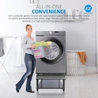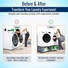 Maximize Convenience and Comfort: Ez Laundry washer and dryer pedestals increase the height of your laundry appliances by 18 inches, significantly reducing back strains and ensuring a comfortable and ergonomic posture during laundry tasks. Enjoy the ease of loading and unloading without unnecessary bending or kneeling, preserving your health and comfort while accomplishing your household chores effortlessly. Robust Design for Heavy Loads: These pedestals for washer and dryer boast an extraordinary load capacity of up to 800 lbs, making them perfect for handling even the heaviest machines without wobbling or instability. Crafted from durable steel alloy, they promise unyielding strength and stability, providing you peace of mind that your appliances are secure for years of reliable service. Seamless Installation and Setup: Forget complicated instructions and time-consuming setups. The Ez Laundry pedestal offers remarkably easy installation, allowing you to have your laundry appliances at optimal height in no time. Experience a hassle-free setup process that saves you time and energy, making it a practical solution for busy households looking for simplicity and efficiency. Innovative Pull-Out Shelf: Enjoy enhanced functionality with the conveniently integrated pull-out shelf, offering extra workspace to sort and fold clothes directly at the machine. This thoughtful feature transforms your laundry routine into a more organized and efficient process, keeping every task within easy reach and providing a seamless workflow from washing to folding. Superior Water Management: Featuring an integrated drain pan and hose, this laundry pedestal for washer and dryer ensures effective water management by safely collecting and draining excess water. Protect your floors from potential water damage and enjoy a cleaner, worry-free laundry environment as you maintain your appliances in the best condition possible. Will Your Machine Fit? Before placing your order, please measure the base dimensions of your laundry machine. Typically, the base depth of your machine matches its width. For example, if your machine is 27" wide, its base depth is also 27". Although the listed depth often includes the door protrusion and may exceed 30", the actual base depth remains 27", making it compatible with our pedestals. This rule also applies to 24", 28", and 29" wide machines, which have corresponding base depths of 24", 28", and 29". Additionally, ensure there is ample clearance above your machines if you have shelves or cabinets, as the pedestals will elevate your machines by 16" or 18". Our pedestal is universal in design and can fit all brands such as LG, Samsung, Maytag, GE, Speed Queen, Whirlpool, Electrolux, Miele, Bosch and many more! This listing is for only one pedestal. Follow us on Facebook and Instagram, we would love answer any and all your questions and please tag us with your purchases. What to receive a FREE EZ Laundry Hamper? Scan the QR Code inside each package to find out. Returns must be within 30 days of delivery. Items must be unused and in original packing.