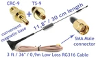 Absolutely universal kit of 4G LTE Antenna Wide Band 7dbi Gain 698-960 / 1710-2700 Mhz GSM Antenna and FREE Special SMA Female to TS-9 and SMA Female to CRC9 Connectors for any Network (Mobile) Cellular Devices. Our LTE Antenna is made for use with 4G LTE modules and devices that require the highest possible efficiency and peak gain to deliver best in class throughput on cellular (4g/LTE) bands worldwide for routers, access points and terminals. The antenna is a ground plane independent antenna with a SMA Male connector on Magnetic base. The Apex exhibits high efficiency across the ultra wide band and is backward compatible with 4G cellular applications. With very high efficiency on cellular band globally it is an ideal solution for any device requiring high, reliable performance. PRODUCT SPECIFICATIONS: - Product name: 4G Magnetic Base GSM Antenna; - Part number: HSA-7027TFM; - Frequency Range: 698-960/1710-2700 Mhz (2G, 3G 4G (LTE)); - Bandwidth: 100 MHz; - Impedance: 50 Ohm; - VSWR: ≤ 1.7; - Gain: 7 dBi; - Polarization: Vertical; - Power Capacity: 50W; - Radiator: Cuprum; - Connector: SMA Male; - Antenna Length (mm): Ø30*300; - Net Weight: 65 g; - Cable type/length: RG316 low loss/59"(1,5m); - Radome Material/Color: Plastic/Black; - Operating temperature: -40°С ~ +60°С. PACKAGE INCLUDES: 4G LTE GSM Antenna 7dbi Gain Wide Band 698-960 / 1710-2700 Mhz on Magnetic Base RG316 Low Loss Cable 59"(1,5m) Length with FREE Special SMA Female to TS-9 and SMA Female to CRC9 Connectors. For any specific network or mobile GSM devices please use SMA Female to TS-9 or SMA Female to CRC9 connectors Package Includes: 4G LTE Antenna Wide Band 7dbi Gain with SMA Male connector on Magnetic Base RG316 Low Loss Cable 59"(1,5m) Length + Free SMA Female to TS-9 and SMA Female to CRC9 Connectors - absolutely universal kit for any network or mobile devices Wide Band Support: LTE 4G; Frequency Range: 698-960 / 1710-2700 MHz Gain (dBi): 7dBi; Wide-Band, High-Gain Cellular LTE 4G Antenna Special designed for use with 4G LTE modules and devices that require the highest possible efficiency and peak gain to deliver BEST in class throughput on cellular band worldwide for access points, terminals and routers The antenna has SMA Male connector (with a PIN inside) that makes it compatible with more network devices. To operate and quick use an antenna with a large number of specialized network components and any of various types of modems (access points, terminals, routers) in the kit includes two free special connectors: SMA Female to TS-9 connector + SMA Female to CRC9 connector