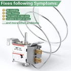 ❤【 Installation tutorial available 】 This is a universal freezer thermostat. When you receive it, if you need an installation tutorial, you can contact me. It is very easy to install and can quickly save your refrigerator. Please feel free to purchase it. >>WPF20 THERMOSTAT UNIVERSIAL USE:As long as the shape and size match, it will be suitable for a variety of different brands of products.Exact replacement for OEM WR09X10197 thermostat,for Hisense,Don't be afraid to do the work yourself - save big bucks. >>FRIDEGE THERMOSTAT CONTROLLER QUALITY ASSURANCE:With the adjustable temperature dial, Obtained a number of qualification certifications, the scope of temperature control can be accurately adjusted. >>REFRIGERATOR THERMOSTAT CONTROLLER WIDELY: APPLICATION:Control the temperature of fridge, freezer, display cabinet, congealer, beverage cooler and similar product. >>Thermostat wpf20 Package content: A mini fridge thermostat wpf20; temperature probe length: 27.5 inch(70cm); 250V 4(6)A 50/60NZ; Universal 2 pin Temperature control range: -2°C to -22 °C (28°F to -7°F). warm on: -2 °C(28°F); warm off: -8 °C(17°F); cold on: -15 °C (5°F)cold off: -22 °C(-7°F). with the adjustable temperature dial, the scope of temperature control can be accurately adjusted.