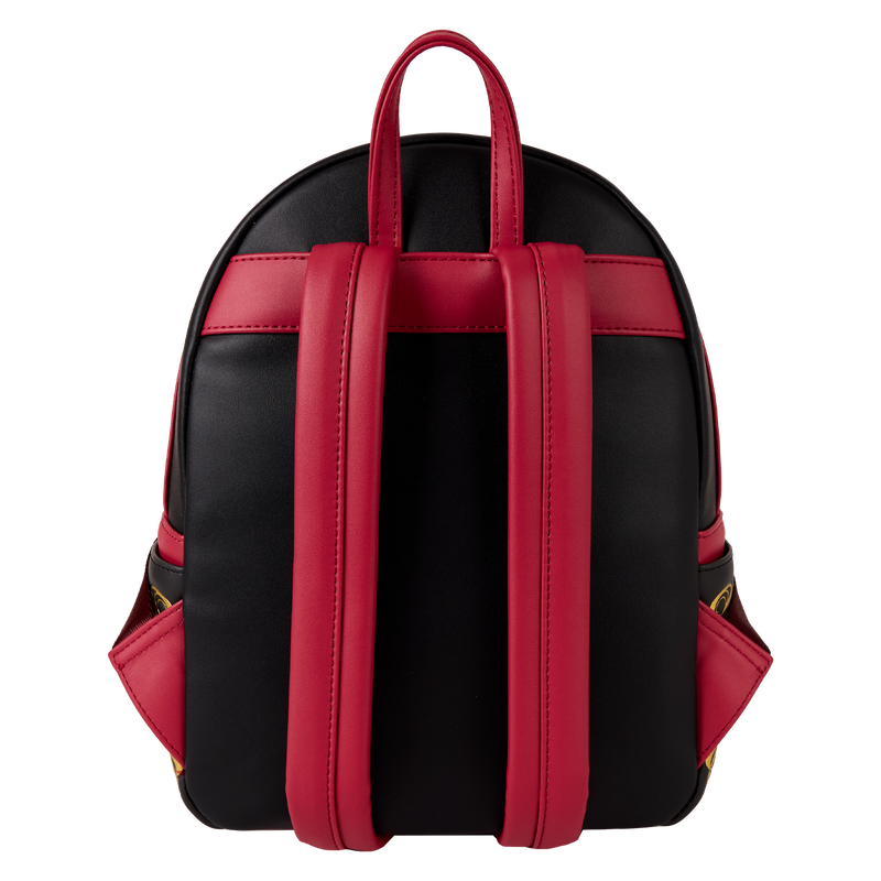 What a beautiful fright! This Bride of Frankenstein mini backpack features a stunning rendition of Frankenstein’s bride in stained-glass portrait style. Her elegant portrait comes to life on the front pocket in vibrant color and embroidered details. She’s surrounded by red embroidered flowers, and gold-foil touches add a dramatic flair. Pack just what you need for a day of reviving your spirits while visiting favorite haunts. Features: Vegan leather (polyurethane) Adjustable, padded strap Sturdy top handle Artwork on the side panels Gunmetal-colored hardware Applique, printed, embroidered, silicone charm, embossed, and gold-foil details Coordinating inside lining Dimensions: 9”W x 10.5”H x 4.5”D 22.9 cm W x 26.7 cm H x 11.4 cm D