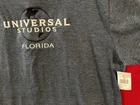Universal Studios- Florida men's short sleeve t-shirt, XL, crew shirt New with tags 60% cotton/ 40% polyester (soft/Lightweight) dark gray w/white embroidered logo on front of shirt Tag reads: Wash with like colors Use only non-chlorine bleach Tumble dry low, remove promptly Do not iron on the decoration (logo embroidery??)