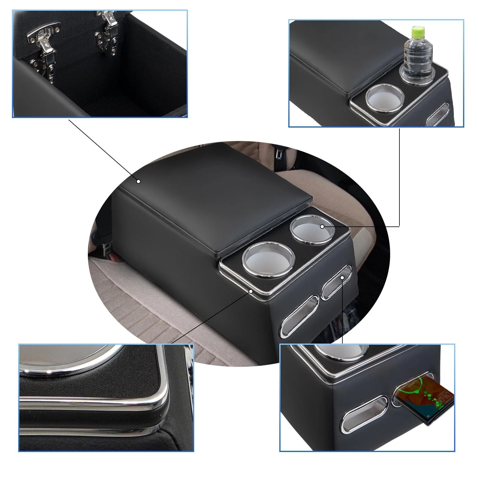 Universal Truck & Car Seat Bench Contractor Center Console Organizer Black Specification: Condition: New Type: Car Center Console Color: Black Material: PVC + Leather Placement on Vehicle: Rear, Center Features: 【Multifunctional Design】This automotive center consoles design with cup holder, phone holder, large storage box and comfortrable armrest. 【Premium Material Seat Organizer】Crafted with heavy-duty materials and covered in high quality microfiber leather, which is durable, long-lasting life and easy to clean,just wipe with a damp cloth. 【Universal Fitment】Our bench seat center console suitable for most vehicles models, which without OEM center console installation. 【Effortlessly Installation】The center console with cup holder come with secure antisweat patch and seatbelt anchor strap, which can be easy to install on the car rear bench effortlessly, providing a steady & secure use during drive. Note: Without Light!!! Package Included: 1x Rear Car Center Console Payment Shipping Return Feedback Contact us Payment 1. We accept PayPal only via eBay Secure Check-Out. 2. Payment is expected within 7 days of the end of the auction or Buy It Now purchase. 3. For International Buyers: a) Import duties, taxes and charges are not included in the item price or shipping charges. These charges are the buyer's responsibility. b) Please check with your country's customs office to determine what these additional costs will be prior to bidding/buying. Shipping 1. All orders will be dispatched within 1-2 business days after receiving the payment. 2. Your order will usually be shipped via UPS, Fedex, USPS and DHL, which usually takes 3~5 days. Local Pickup is NOT supported. 3. We do not ship to Hawaii, Alaska, Puerto Rico, PO Boxes, APO's, FPO's, or Military Mail Boxes. 4. We provide tracking numbers for all orders. You can track your package on the carrier's official website with the tracking number provided after dispatch. 5. Buyers are responsible for any customs and import taxes that may apply. Return 1. If you are not satisfied with your purchase, we are here to help. You have 30 days to return an item from the date you received it. To be eligible for a return, your item must be unused and in the same condition that you received it. Your item must be in the original packaging. 2. Please contact us first before you sent a return request. 3. Please notify us of the tracking number of the returned package. Feedback 1.We appreciate your business and strived to improve our customer service and our commitment to quality. 2.We will leave a positive feedback immediately after payment is received. We appreciate a positive feedback as much as you do. 3.If for some reason there is any issue with the purchase, please contact us prior to leaving feedback, and we will be glad to work with you to have it resolved. Contact us 1. Whenever you have any question, feel free to contact us. We are happy and try our best to help. 2. We will usually replay you within 24 hours. However there will be some delay if on weekend. 3. Please see Our Working Time: (GMT+8) Monday to Friday, 9:00-18:00