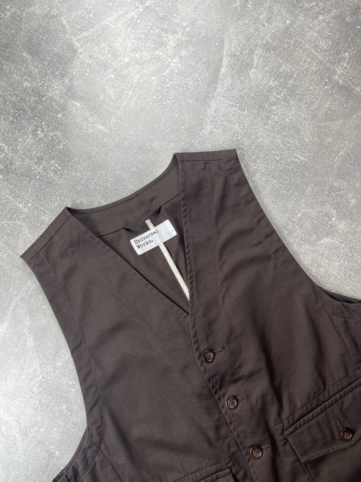 πΊπΈ The seller (trats_shop) pays all import taxes ("Trump Tax") β no additional customs fees for buyers. Universal Works Brown Field Waistcoat Vest β Size M Add refined workwear style to your wardrobe with this Universal Works field waistcoat in chocolate brown. Designed in a functional yet minimal silhouette, it features utility-inspired details and high-quality tailoring, perfect for layering over shirts or knits. π Measurements (approx.) Size: M Chest: 50 cm / 19.6 in Shoulders: 33 cm / 13 in Length: 59 cm / 23.2 in Hem: 51 cm / 20 in (Measurements taken flat, please compare with a similar item for best fit.) β¨ Key Features Color: Chocolate brown Material: High-quality cotton blend (sturdy yet comfortable) Classic V-neck button closure Two large front flap pockets with button fastening Back cinch adjusters for a tailored fit Universal Works woven label on interior Timeless utility/workwear aesthetic π Style Tips & How to Wear Layer over a white tee or oxford shirt for casual smart looks Pair with denim or chinos for a rugged workwear-inspired outfit Style under a blazer or jacket for a layered heritage look π Brand Story Founded in 2009 in Nottingham, UK by David Keyte, Universal Works blends British workwear traditions with contemporary design. The brand is known for its clean tailoring, durable fabrics, and timeless silhouettes, focusing on honest, functional clothing crafted with integrity. π Store Highlights New vintage & designer drops weekly Save my store & subscribe for updates Open to offers β bulk buyers welcome π Shipping Information United States UPS / USPS / Ukrposhta β 14β30 days Europe & Asia Standard Shipping β 21β30 days Rest of the World Avia Standard Shipping β 30β45 days β‘ Express shipping available (7β14 days). Message me for rates. π Tags UniversalWorks, WorkwearVest, MensStyle, UtilityVest, HeritageWorkwear, JapaneseStyle, LayeringVest, UniversalWorksVest, MinimalistMenswear
