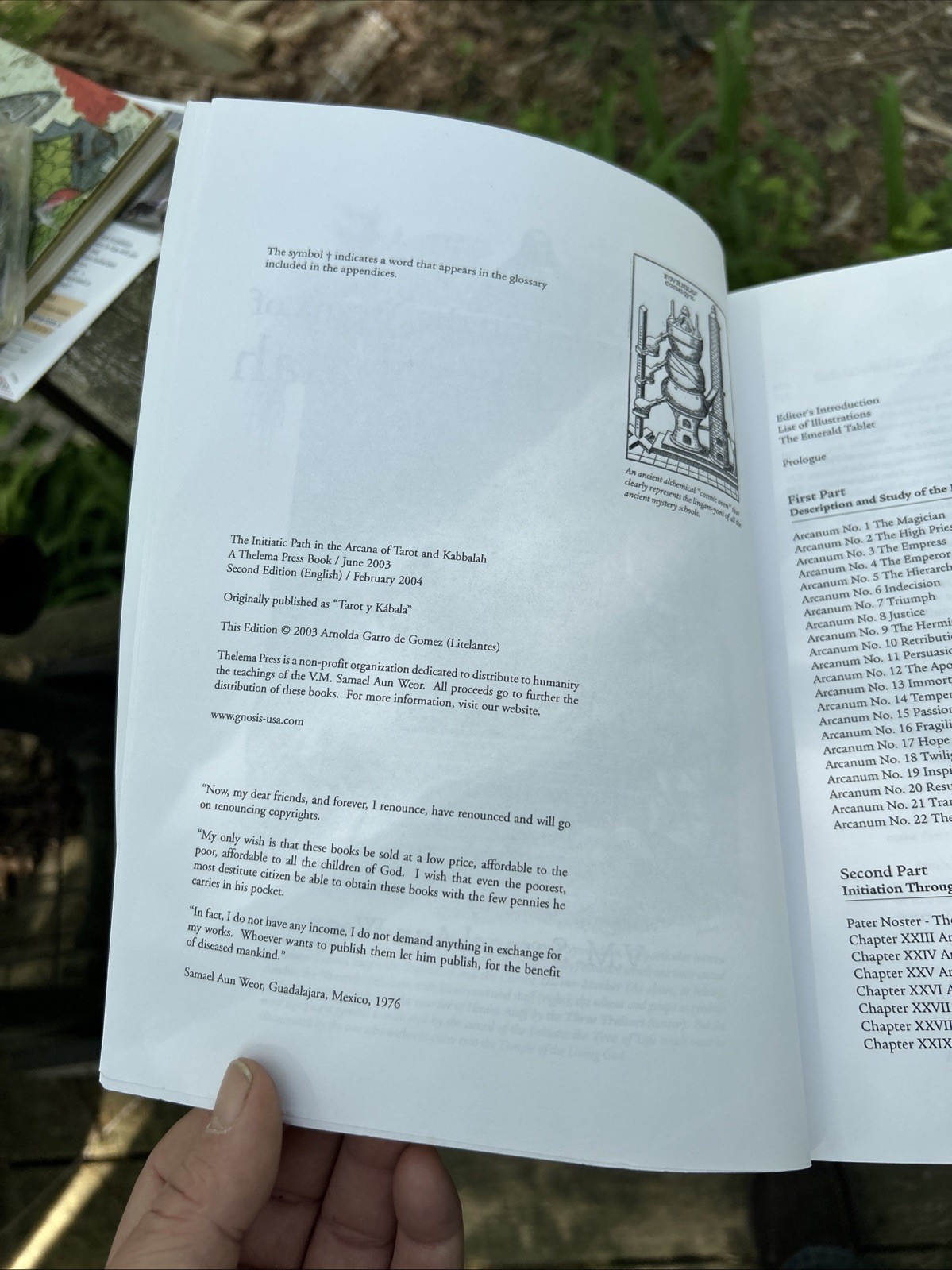 Genre:Mind, Body & Spirit, Philosophy, Spirituality, Tarot, KabbalahBook Title:THE INITIATIC PATH IN THE ARCANA OF TAROT AND KABBALAHNarrative Type:NonfictionTopic:Tarot, KabbalahAuthor:Samael Aun WeorPublisher:Thelema PressPublication Year:2004Language:EnglishFormat:Soft Cover