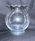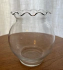 This unmarked glass footed fishbowl flower vase features a unique ruffled scallop edge design, making it a versatile piece that can also serve as a candle holder. The clear glass material allows for a beautiful display of flowers or candles, adding a touch of elegance to any space. Perfect for those who appreciate delicate and intricate details, this vase is ideal for showcasing bouquets of flowers or creating a cozy ambiance with candlelight.
