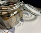 ***Jar not included, prop only**** You will receive a double ended hand crimped wheat penny roll with 1 end containing a 90% silver dime. This is a roll of mixed dates, unsearched Lincoln Wheat Small Cents. These coins are a great addition to any coin collection and are perfect for those who enjoy the thrill of the hunt. Please note that the coins are circulated and may show signs of wear and tear. Rest assured, we roll these from bulk lots and do not search through them. No returns or refunds on our items. No exceptions. Please bid and buy responsibly.