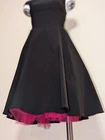 Up Front Vintage Y2K Retro Decolletage Bodycon Fit Flare Dress Pinup Semiformal Coquette Whimsgoth Rockabilly Size 3, vintage juniors sizing, fits like a modern women's XS - see photos for measurements and add up to an inch in stretch Thick, flattering, stay in place spandex blend Classic, ladylike shape with fun pink tulle underneath for volume and swing, modern Y2K Gwen Stefani Olivia Rodrigo school dance vibes Made in the USA, high quality construction, used with general signs of wear but no major or known flaws