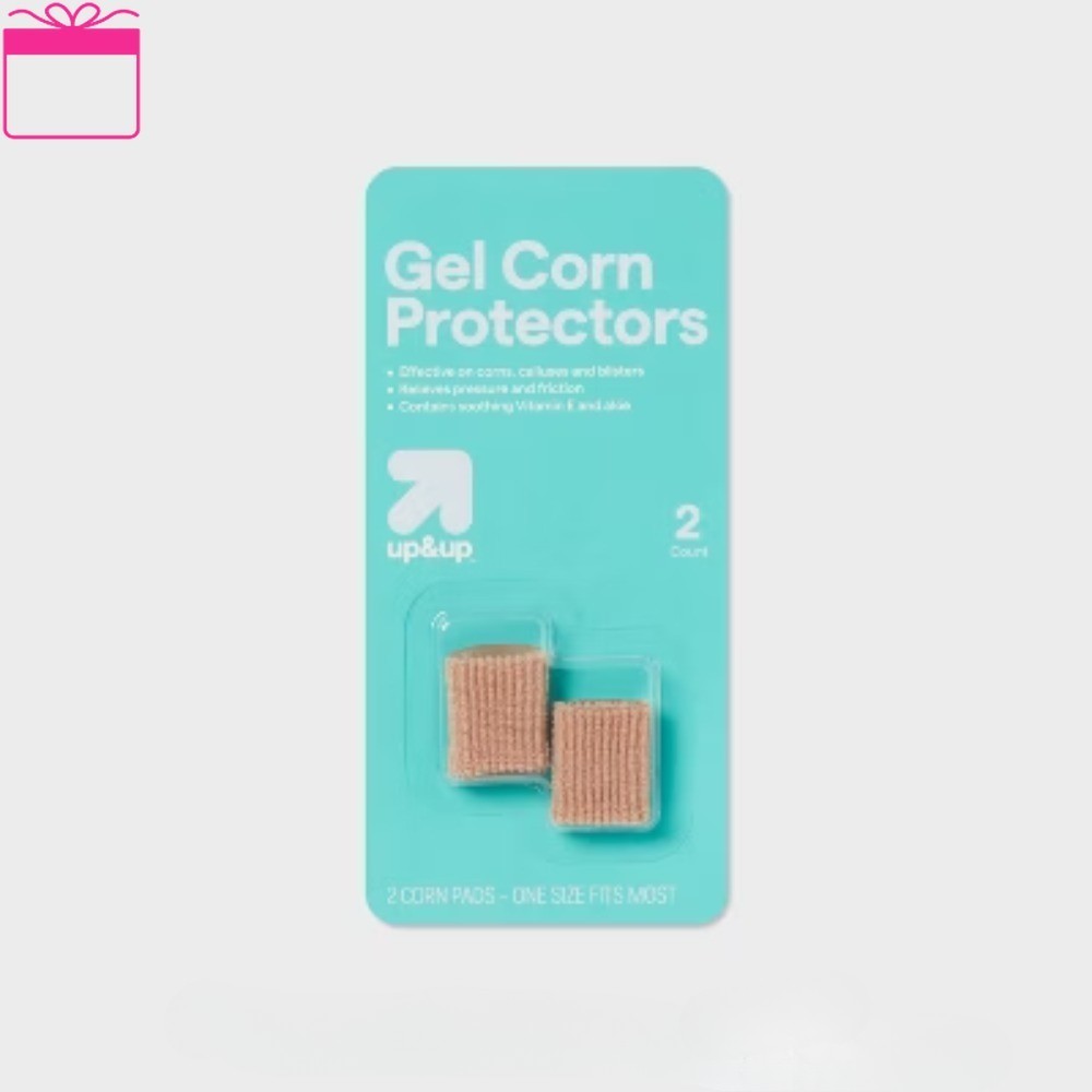 Description If corns are causing you pain whenever you spend time on your feet, help cushion and protect them from shoe pressure with up&up™ Gel Corn Protectors. Made with gel pads to reduce friction and soft, stretchy design that fits over your toe without using adhesive, this pack of gel corn protector sleeves can help you get back to focusing on the workday or enjoying a night out by reducing irritation and pressure. Plus, the gel contains mineral oil to help soften corns and moisturize skin. We believe making smart choices for the people, places, and pets in your life should be easy and affordable. And, having quality you can trust should be a given. That’s why you can count on our promise – caring for your everyday in every way. Satisfaction guaranteed – Love it or your money back. highlights Packaging may vary. Same trusted quality Gel corn protectors cushion corns against pressure and friction Soft and stretchy sleeve design stays in place without adhesive Specially formulated gel contains mineral oil to moisturize and soften skin If you’re not satisfied with any Target Owned Brand item, return it within one year with a receipt for an exchange or a refund Allergens & Warnings: WARNING: If you have diabetes or poor circulation, consult your physician before using this product. If pain, numbness, discoloration or irritation occurs, discontinue use immediately., KEEP OUT OF REACH OF CHILDREN AND PETS