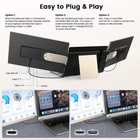 New upgraded laptop monitor extender:Made of aluminum alloy and PC material, this new generation laptop screen extender is durable and drop-proof; and the upgraded magnetic structure makes it more stable. A variety of screen combinations and its detachable screens can meet all your needs, allowing you to entertain easily and work conveniently. Perfect for mobile office, remote workers, IT, gamers, stock traders, programmers and more 1080P IPS FHD quality:The triple portable monitor laptop uses 15.6-inch FHD 1080P IPS screen, providing you higher image quality, brighter screen and more vivid colors. With the built in speakers, you can enjoy a better viewing experience. At the same time, the low-blue light design portable display has anti-glare and flicker-free functions, which provides eye protection 300% Improve work efficiency:15.6" Portable laptop screen triple monitor with 2 additional detachable screens, supports 235° horizontal rotation and 90° vertical rotation, horizontal mode, portrait mode, dual screen display and other combinations to provide you a variety of viewing angles, enables you to open multiple windows at the same time. Working on different screens, video conferencing, watching movies, etc. No need to switch back and forth on one screen, improve productivity and save your time Plug and Play, no driver required:This is a laptop triple screen extender for 13.3"-17.3" laptops, whether you choose a USB-C, USB-A or HDMI connection, simply plug in the laptop screen extender and start your daily use without drivers. (Please note: When using the HDMI cable, connect an additional USB-A to USB-C cable on the same screen extender for power supply) Broad compatibility and Christmas gift: Laptop screen extender supports a variety of devices and operating systems, and this triple screen laptop monitor extender is compatible with Windows, Mac (does not support M1/M2/M3 chip), Chrome, Android, Linux, Dex other devices, please read the instructions carefully before use. If you have any questions, feel free to contact us and we will get back to you within 24 hours