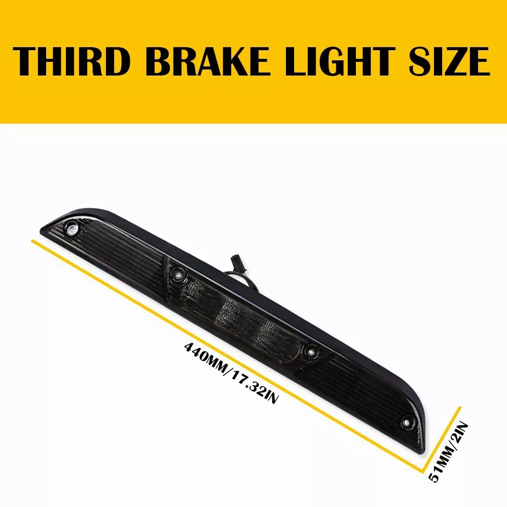 Application: 2015-2020 Ford F-150 2017-2021 Ford F-Series Super Duty F-250 | F-350 | F-450 2019-2021 Ford Ranger Regular Cab | Super Cab | SuperCrew Cab NOT Compatible with Raptor Models NOT Compatible with Ultimate Trailer Tow Camera System (Third Brake Light w/ Built-In Camera) Models Description: Condition: 100% Brand New Direct Plug & Play, Low Power Consumption Super Bright LED lights Compare to the Halogen Bullet-Cap LED: Brake & Cargo Voltag: 12V Material: ABS Plastic Life-Span: UP 50000 Hours Product includes: high-position brake light*1 waterproof gasket*1 Light color: white light + red light Lamp shell color: smoked semi-transparent shell Mode: white light cargo lights on the left and right sides, red light brakes in the middle (no light guide) Number of lamp beads: 6LED on each side, 6LED in the middle Waterproof grade: IP67 Package Includes: 1 X Third Brake Tail Light Features Compatible with Ford 2015-2020 F-150, 2017-up F-250 F-350, 2019-up Ranger and 2022-up Maverick Please note that this product will not fit the models with rearview camera built-in the 3rd brake nor replace the OEM LED third brake such as the Raptor or F250 PLATINUM/LIMITED, etc Full LED high mount cargo illumination third brake light with smoked lens and powered by fast bright red and white LED diodes for brake and reverse function Easy to install and replace the OEM red/clear Altezza style incandescent bulb 3rd brake for a more trendy smoked lens Give your truck a more modern rear LED third brake light setup with improved safety and style! Description Want to give your truck a more modern and bright third brake light? This page features the hight mount LED third brake light assembly for the following vehicles: Fit 2015-2020 Ford F-150 2017-up Ford F-250 F-350 2019-up Ford Ranger please note this is NOT compatible with models that come with LED third brake from the factory such as Ford Raptor Your package will include one full LED high mount third brake light with a smoked lens and powered by bright red and white LED diodes for the brake and reverse functions. This light is easy to install and replaces the OEM red/clear altezza style incandescent bulb 3rd brake for a more trendy smoked lens. Give your truck a more modern rear LED third brake light setup with improved safety and style! On Apr 4, 2025 at 09:18:59 PDT, seller added the following information: