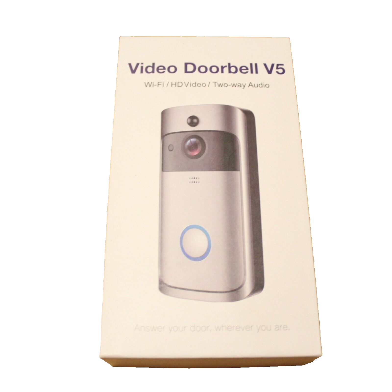 For sale is a Video Doorbell V5 Wi-Fi HD Video Two Way Audio Silver New Open Box. New open box, never used. Please see photos. This was given to my elderly parents, but they are unable to use most technologies, so I am selling it for them. Please let me know if you have any other questions.