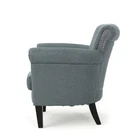 Specifications Place of Origin #originPlace# Main Color Blue+Grey Main Material Fabric Dangerous Goods #dangerFlag# Dimensions & Weights Assembled Length (in.) 31.00 Assembled Width (in.) 29.50 Assembled Height (in.) 31.50 Weight (lbs) 30.86 Product Features A real showstopper, this beautifully upholstered armchair will place you and your guests in the lap of luxury. Our charming club chair is perfect for adding a splash of color to your home while still providing extra seating when needed. Featuring an elegantly curved design, stunning nailhead trim, and subtly rolled armrests, this chair is a must-have. From your living room space to a cozy corner of your bedroom. DIMENSIONS: This club chair is 31.00' W x 29.50' D x 31.50' H. Material: Fabric Leg Material: Birch Wood Includes: One (1) Club Chair Description
