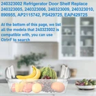 Upgraded 240323002 Refrigerator Door Bin Shelf (2 Packs) Fit for frigi-daire, ken-more,Refrigerator Side Bottom Shelf, Clear, Replaces 890955,AP2115742,PS429725,EAP429725 Description Features: ADVANTAGE: 240323002 refrigerator door shelf replacement made of resin material, safer At the bottom of this page, we list all compatible refrigerator models, please use Ctrl+F to search PART NUMBER: 2 x 240323002 frigi-daire door shelf replacement, NOT FIT 240363702, 2423002 refrigerator replacement shelves is not suitable for refrigerator models starting with "ffss", "lfss" or "fgss"Please measure the size of your door box before ordering, in case of ordering error PRODUCT SIZE: 240323002 frigi-daire replacement door shelf Length: 15.88 inches, Depth: 4.2 inches, Front Height: 4 inches, If you are not sure if 240323002 frigi-daire replacement shelf is suitable for your refrigerator, please tell us your refrigerator model and we can confirm it for you REPLACEMENT NUMBER: 240323002 frigi-daire replacement parts replaces part numbers 240323005, 240323006, 240323009, 240323010, 890955, AP2115742, PS429725, EAP429725 EASY TO INSTALL: 240323002 fridge door shelf replacement is easy to install, saves time and effort,If your shelf case has cracks, is damaged, or wants to add extra storage space to the refrigerator, you can replace parts of it.Just hang the trash can on the refrigerator door, easy to install, no tools required Product Details: Manufacturer: AMI PARTS Part Number: 240323002-2X Item Weight: 2.14 pounds Package Dimensions: 17.01 x 6.5 x 5.79 inches Item Package Quantity: 2 Batteries Required?: No Date First Available: March 24, 2023 Handling We will ship all orders within 3 business day of payment. Delivery We Do Not Ship Outside of the Continental US. Return Policy All items qualify for returns within 30 days of receipt. Buyer is responsible for return shipping on any item that is not damaged. Feedback We take our reputation seriously, we buy and sell online, so we understand the value of trust. If you are unsatisfied with your order, please contact us and we will work with you to resolve it to your satisfaction.